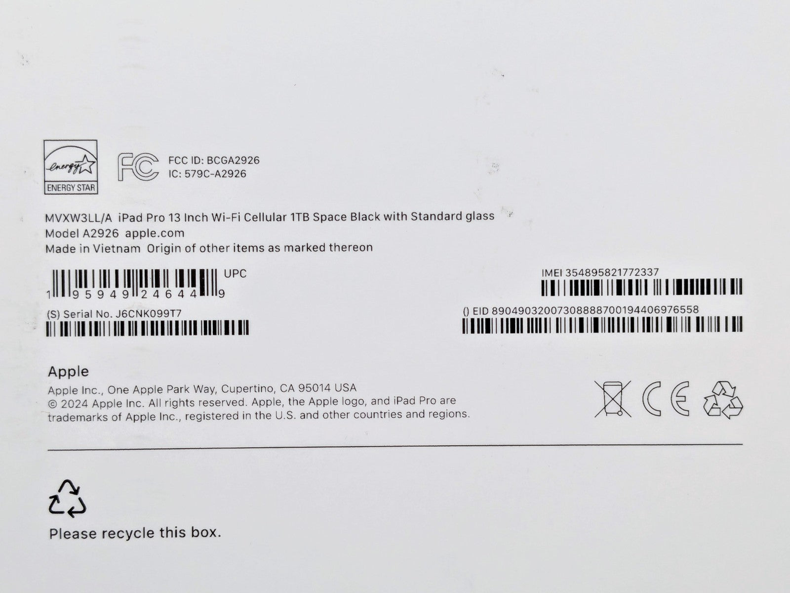 Apple iPad Pro 13-inch (M4) Wi-fi+ Cellular 1TB