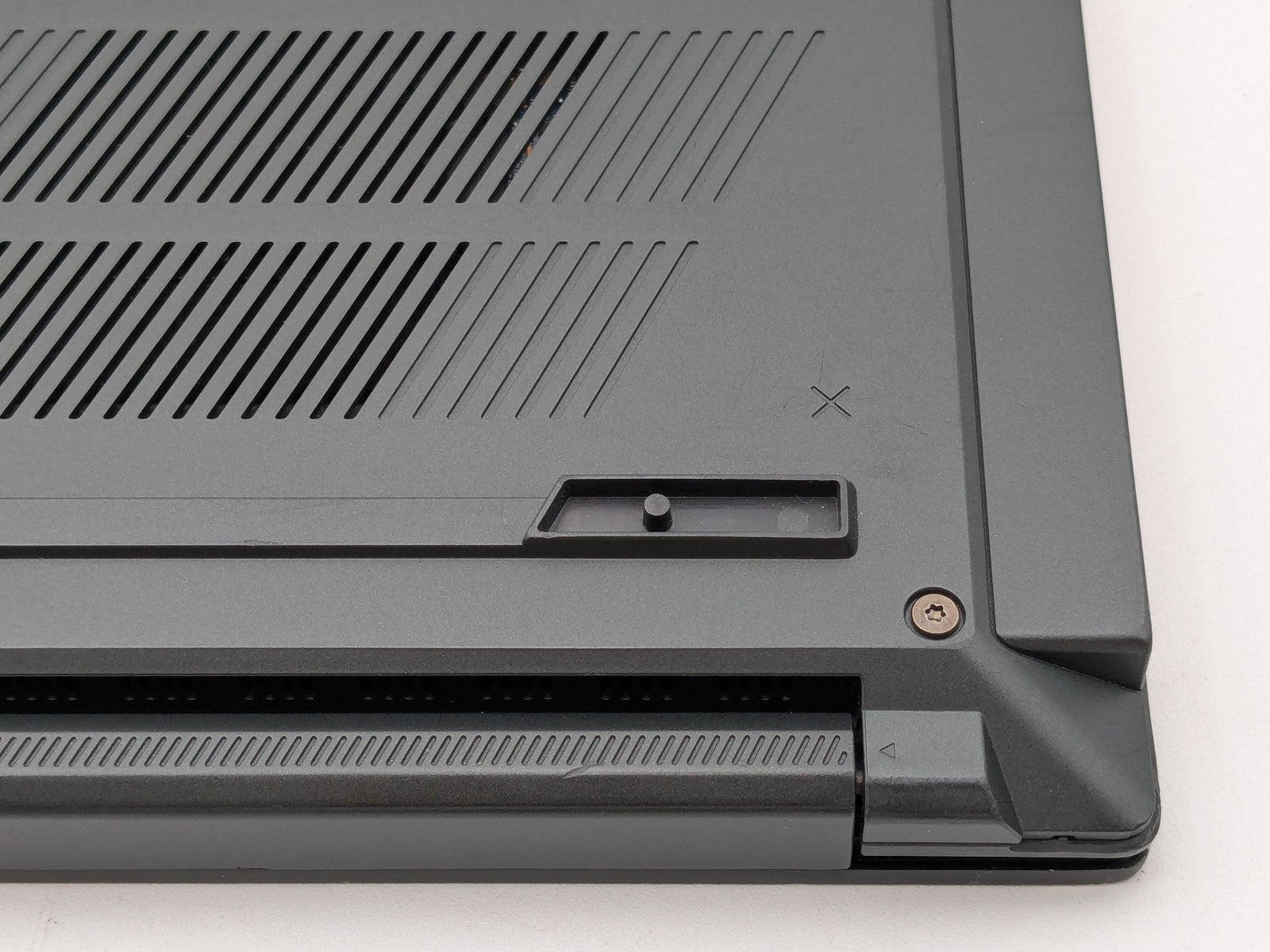 Cosmetic Defects: Interior: Display has visible scratches and keyboard imprinting. Visible wear on keyboard, touchpad, palm rest, lattice, and around keyboard. Missing rubber stabilizers on bezel. Exterior: Visible wear and scratches on lid and bottom cover, missing bottom rubber foot. Scuffed along edges.