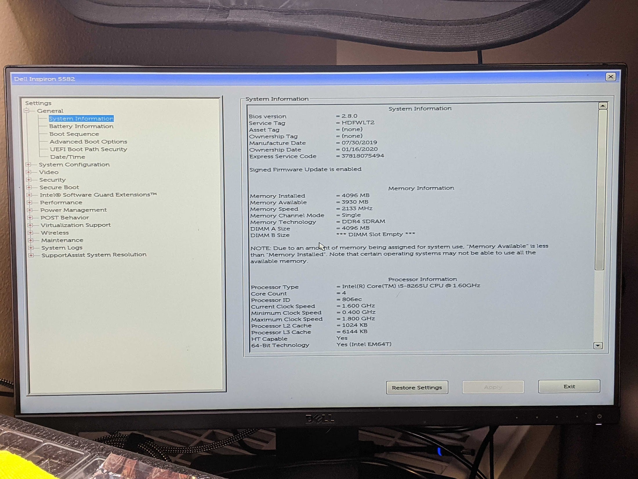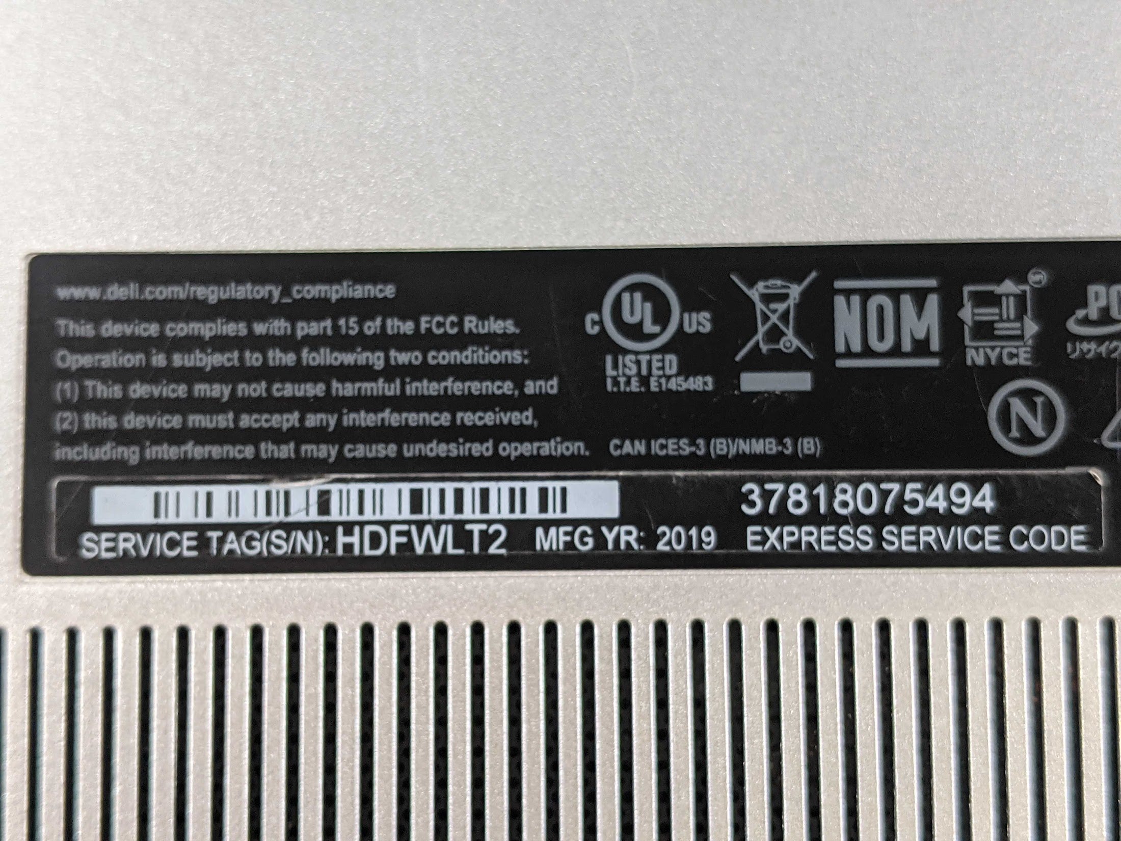 Dell INSPIRON 5582 I5-8265U 1.60GHz Motherboard Palmrest Battery Top Cover