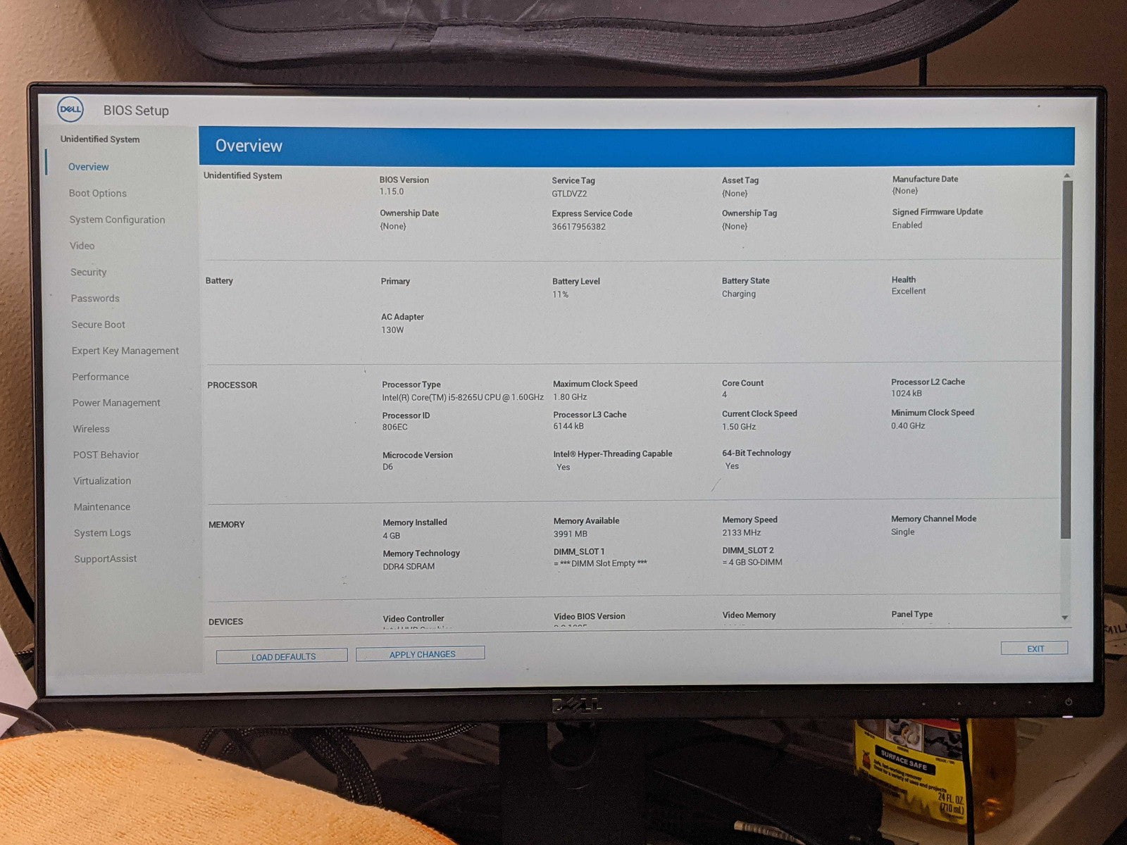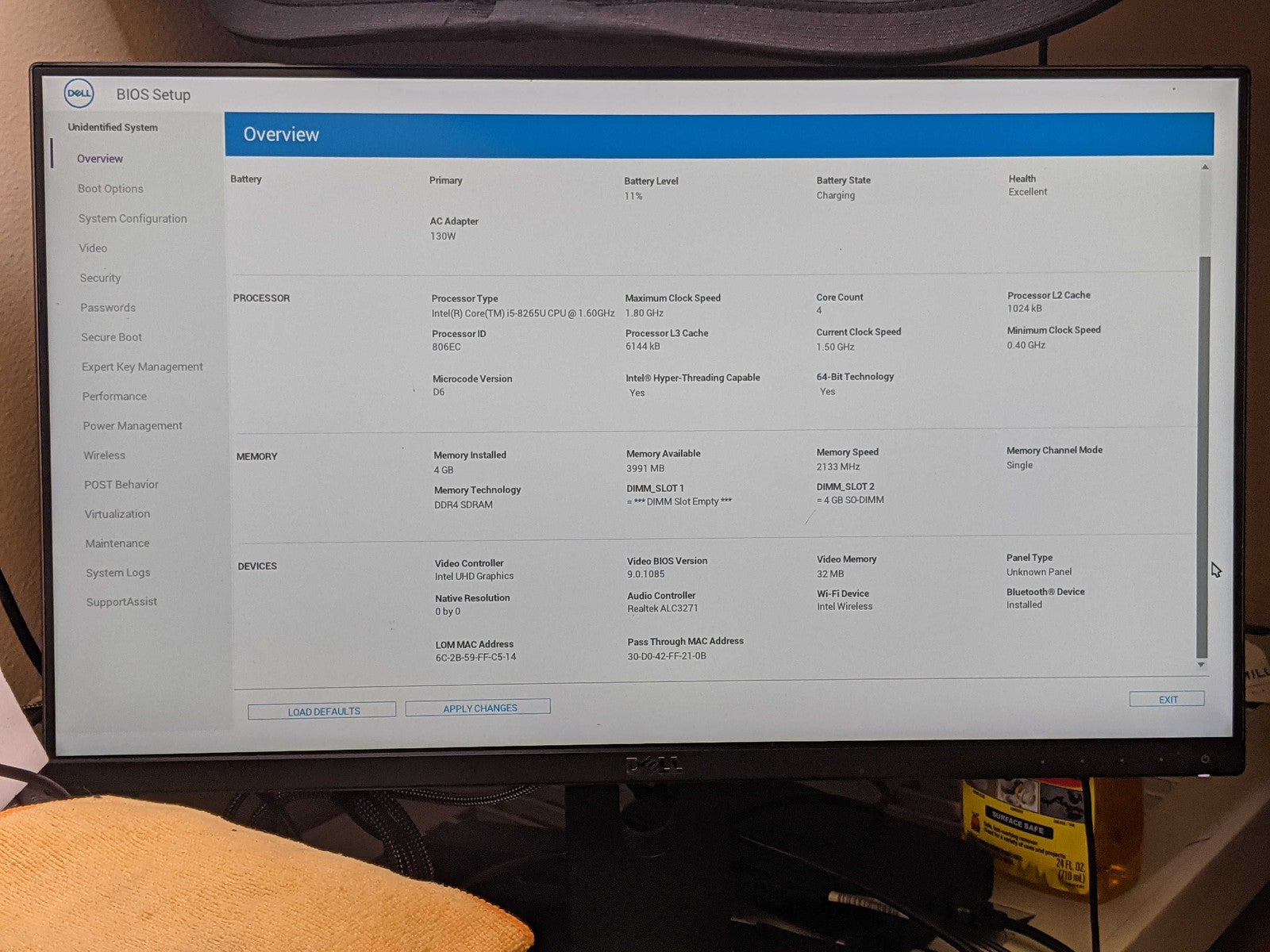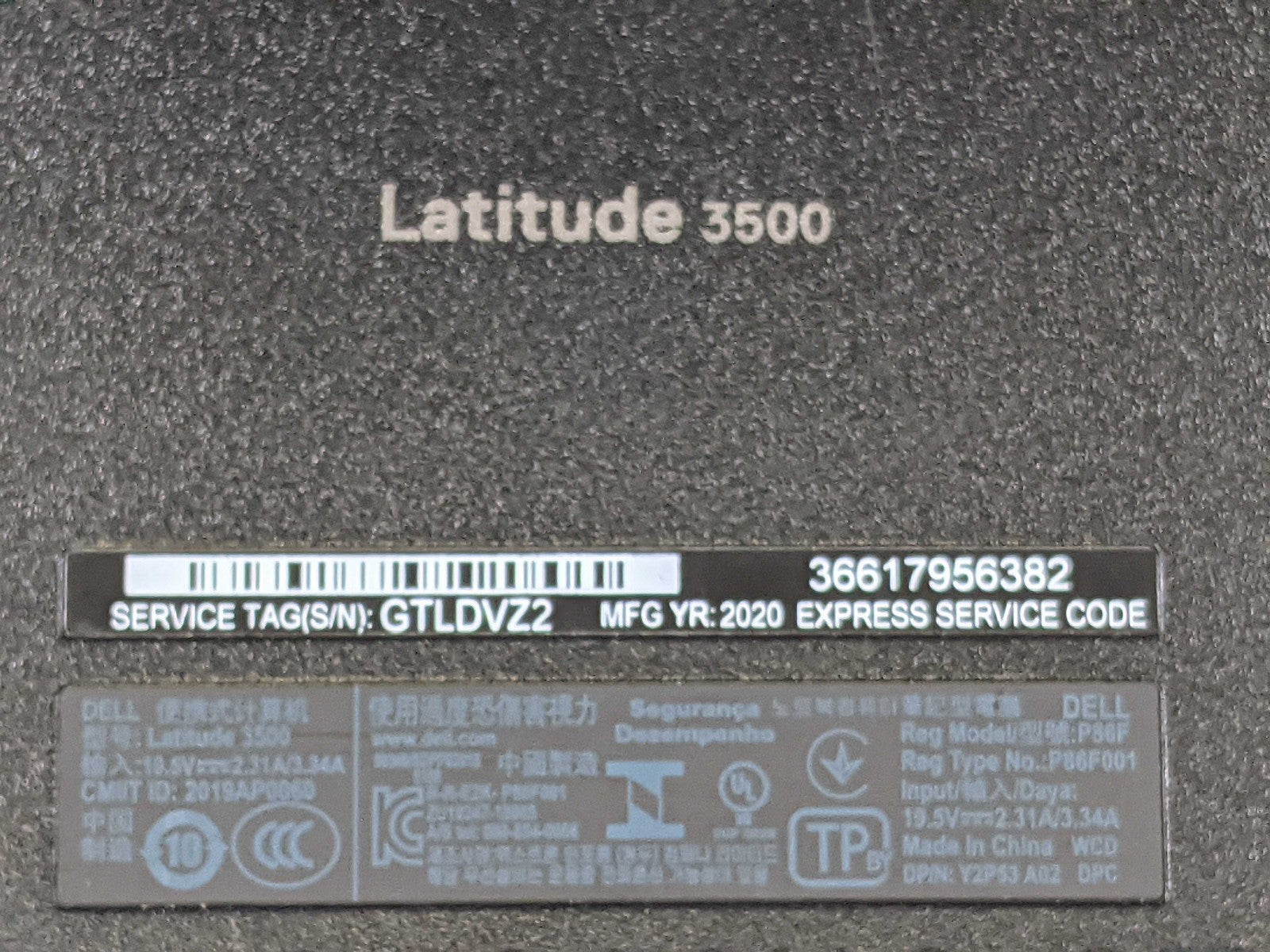 Dell LATITUDE 3500 I5-8265U 1.60GHz Motherboard Palmrest Battery Top Cover