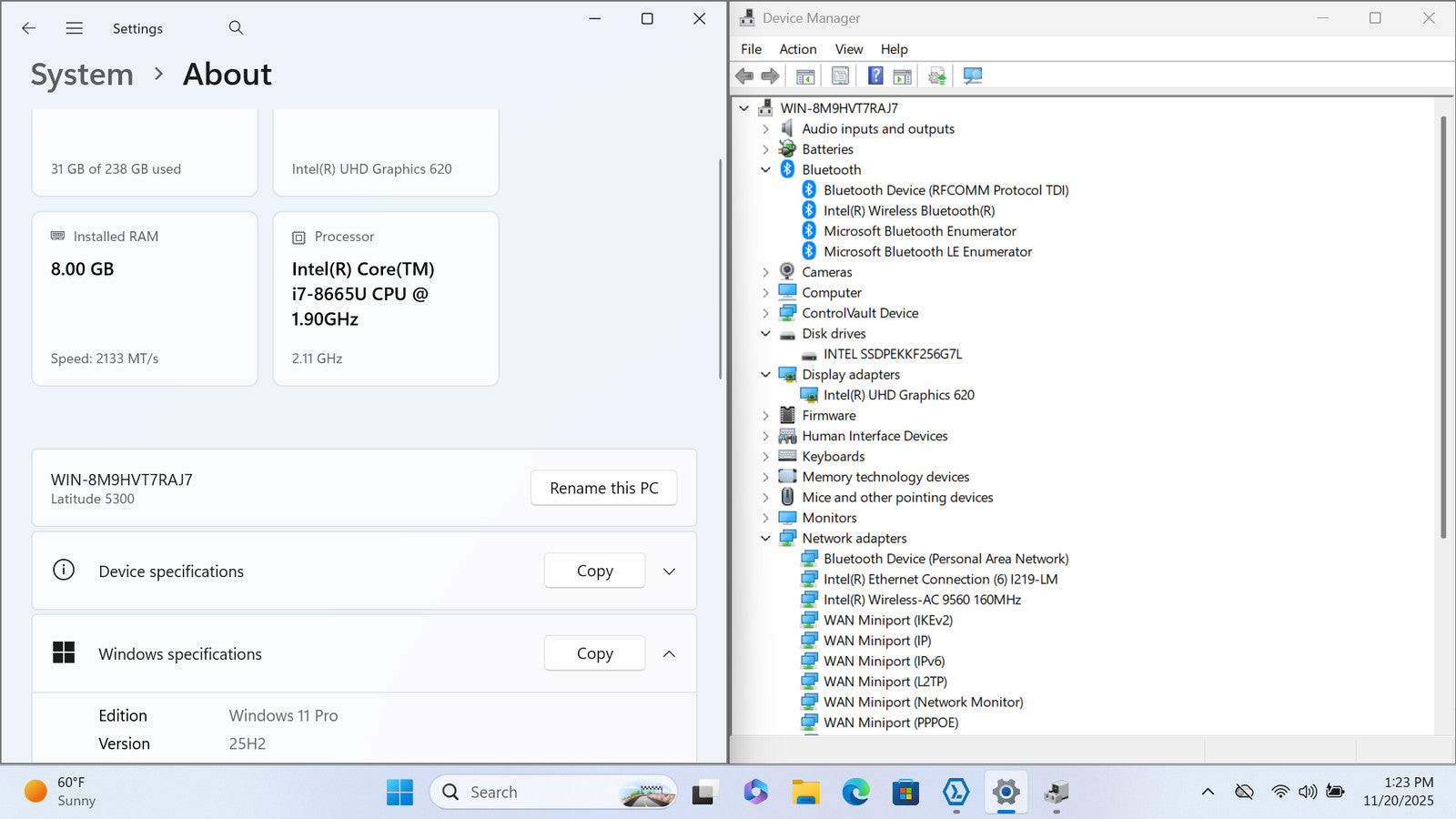 Dell Latitude 5300 13" FHD I7-8665U 256GB SSD 8GB W11P Webcam Backlit