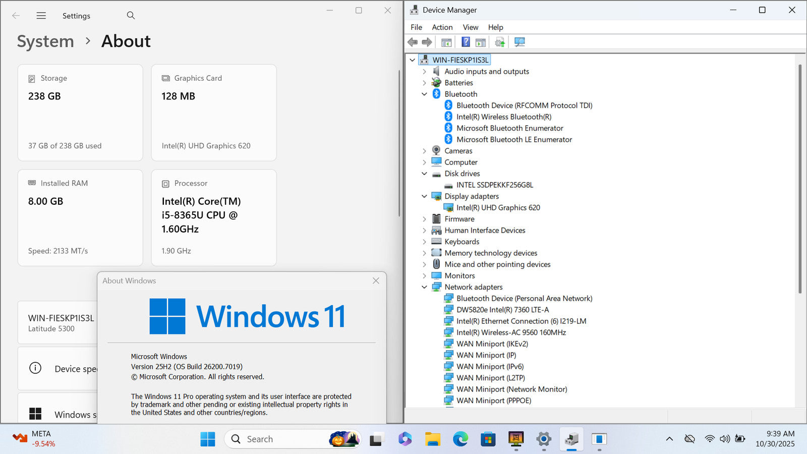 Dell Latitude 5300 13" FHD Touch I5-8365U 256GB SSD 8GB W11P Webcam *READ*