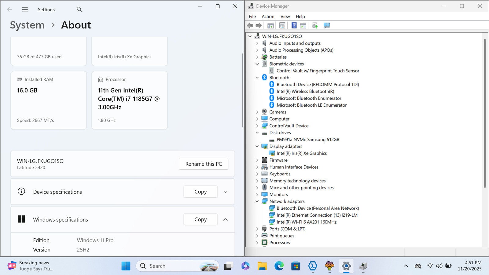 Dell Latitude 5420 14" FHD I7-1185G7 512GB SSD 16GB W11P Webcam Backlit FPR