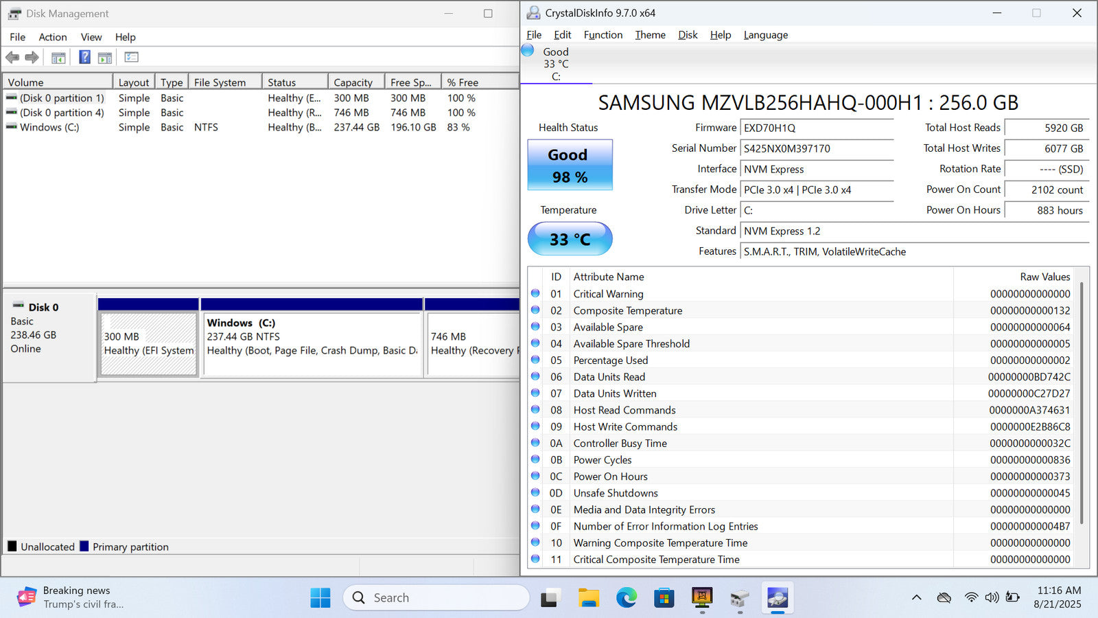 Battery Condition: Battery 1: 38,019/50,992mWh 74.56% | Battery 2: 28,477/50,992mWh 55.85%