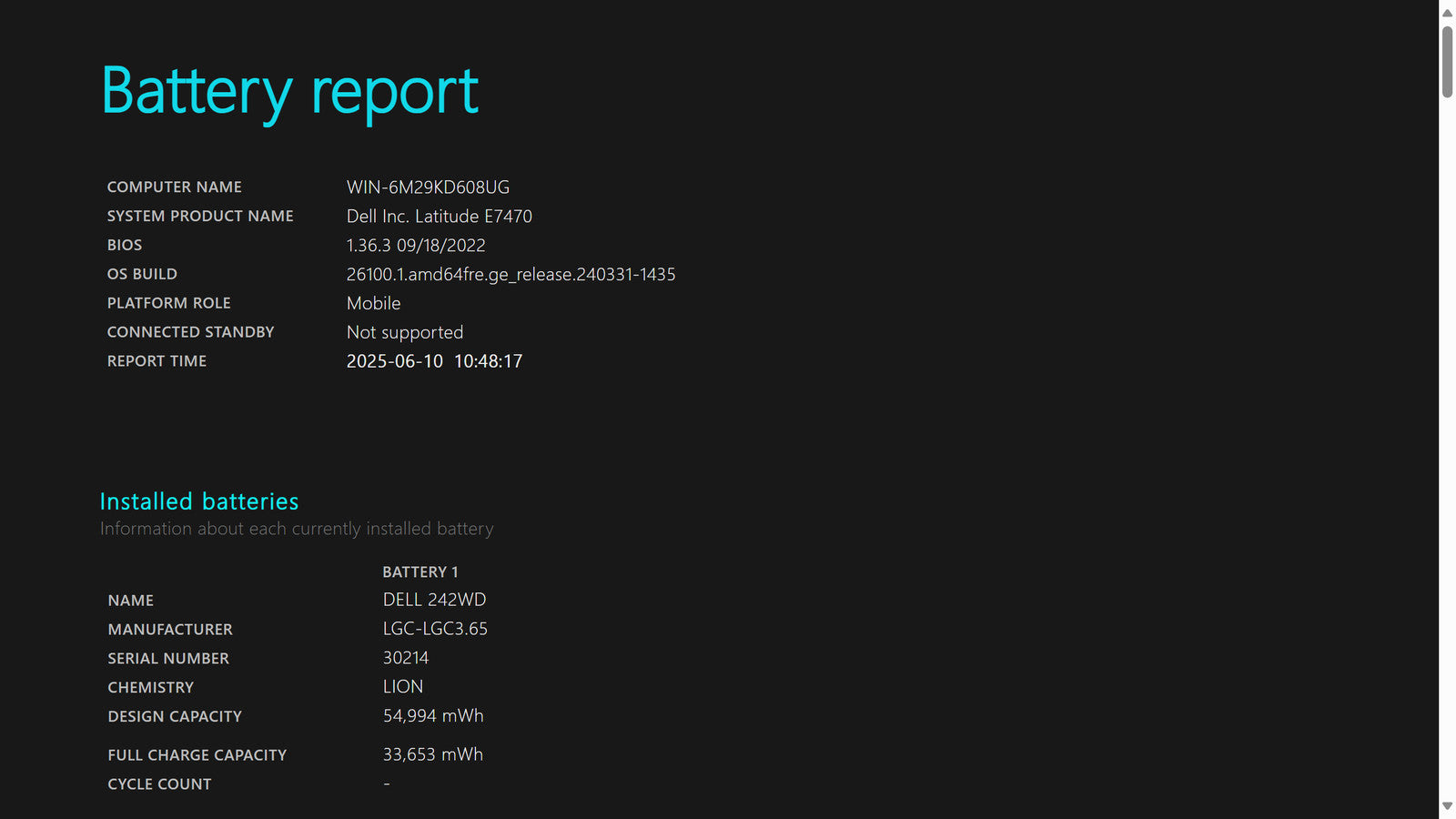 Battery Condition: 33,653/54,994 mWh 61.19%