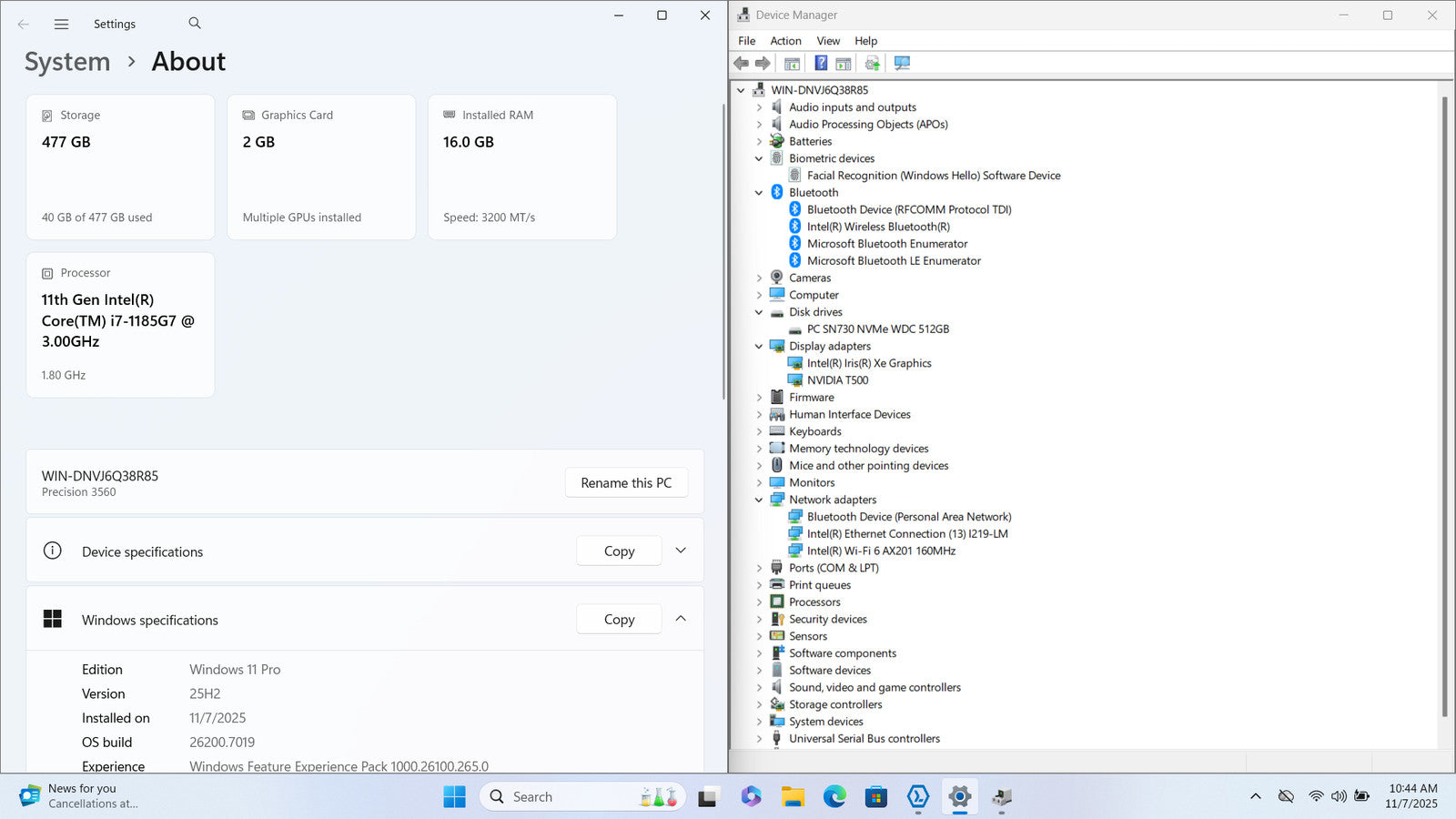 Dell Precision 3560 15" FHD Touch I7-1185G7 512GB 16GB W11P T500 Backlit IRCam