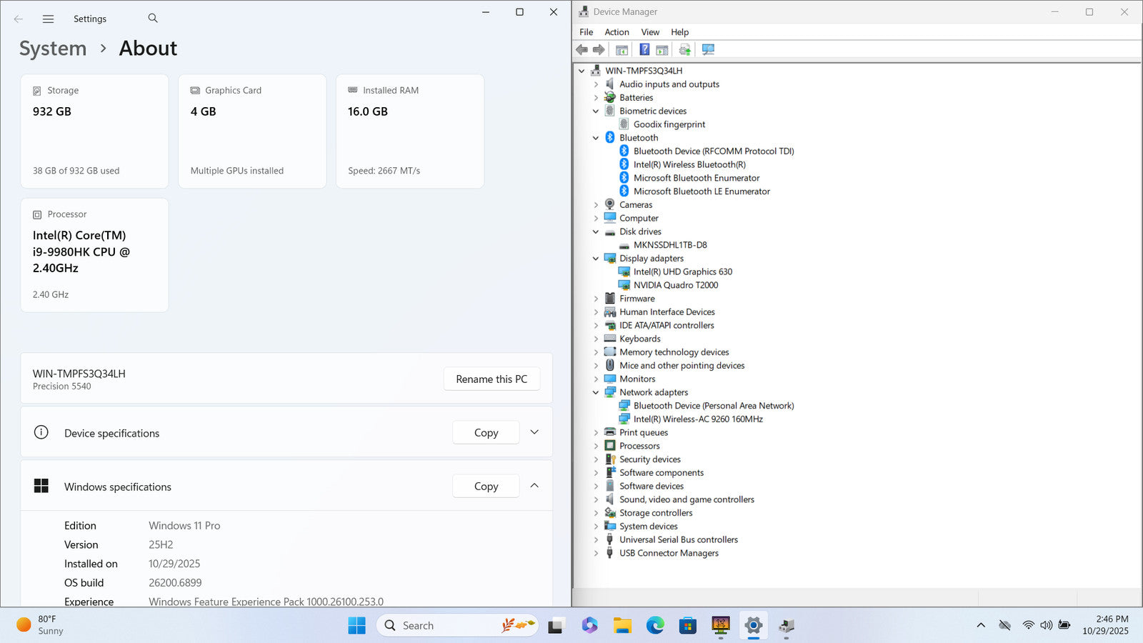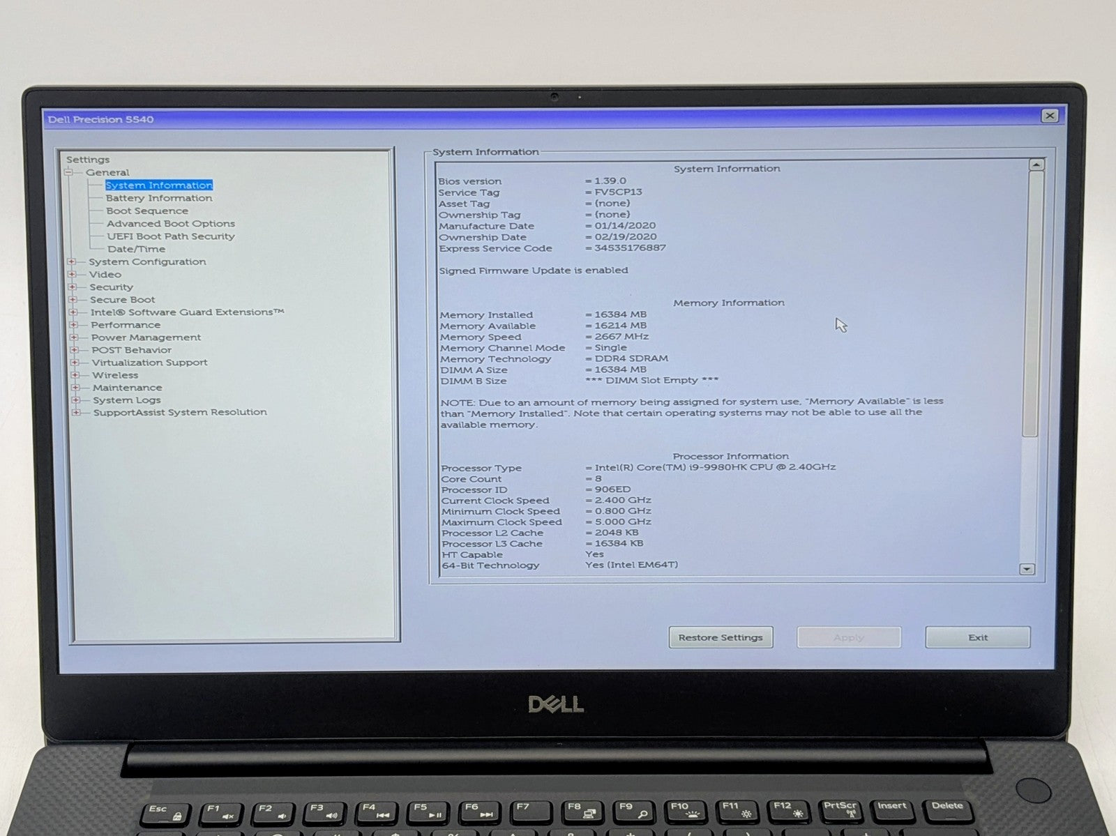 Dell Precision 5540 15" FHD I9-9980HK 1TB SSD 16GB W11P Quadro T2000 Webcam