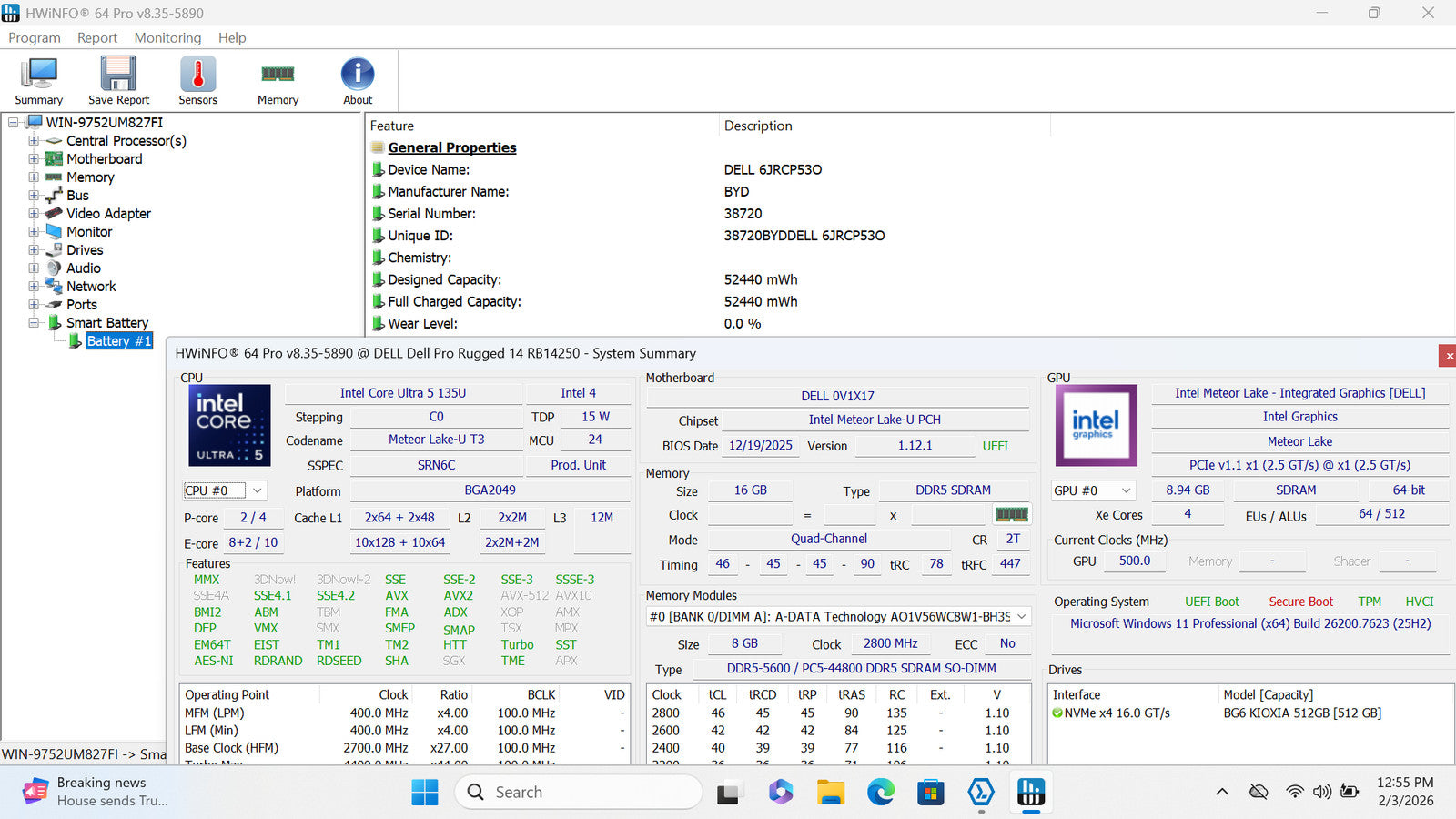 Dell Pro Rugged 14 RB14250 14" FHD ULTRA 5 135U 512GB SSD 16GB W11P Webcam
