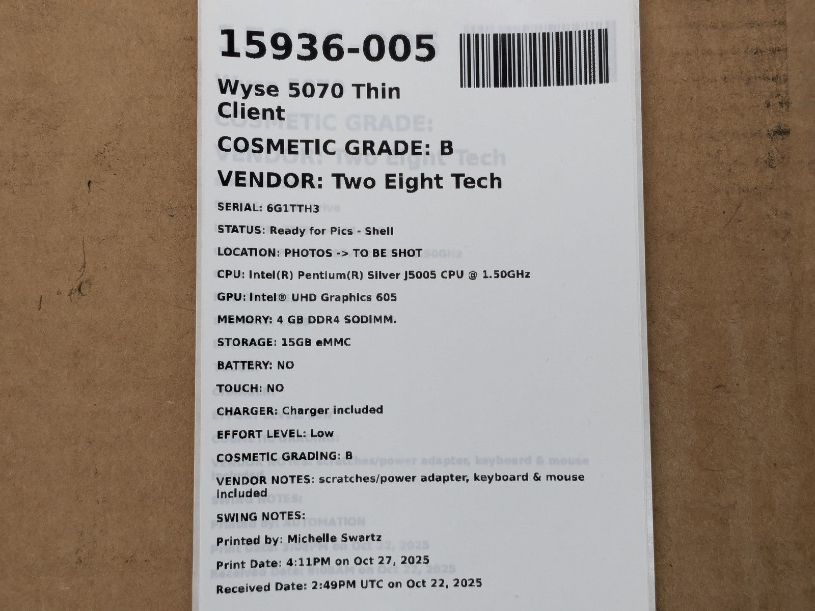 Dell Wyse 5070 Thin Client 4GB PENTIUM SILVER J5005 15GB SSD