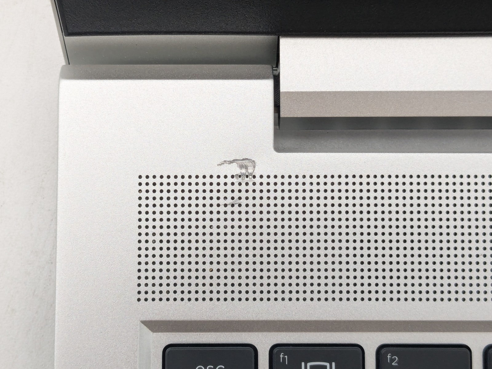 Cosmetic Defects: Interior: Display has small, visible mark. Palmrest has visible scratch and scuffs. Exterior: Bottom cover has small, deep scratches.