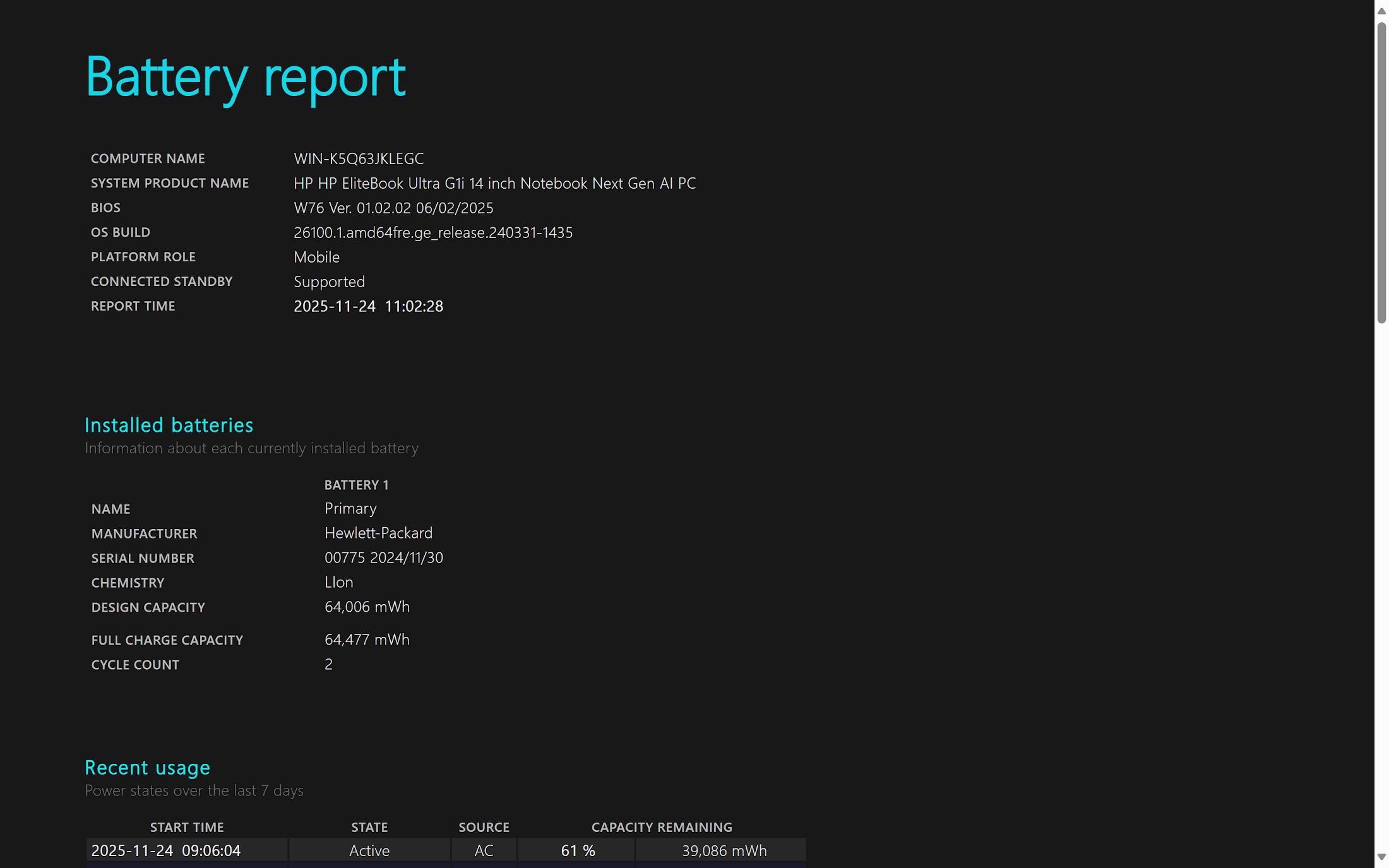 Battery Condition: 64,006/64,168 mWh 99.75%