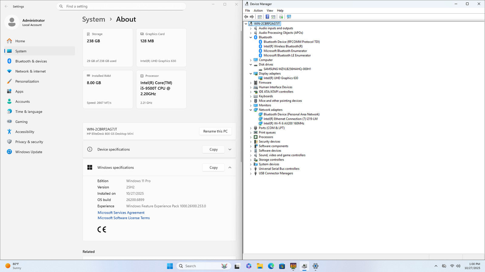 HP EliteDesk 800 G5 Desktop 24" I5-9500T 256GB SSD 8GB W11P