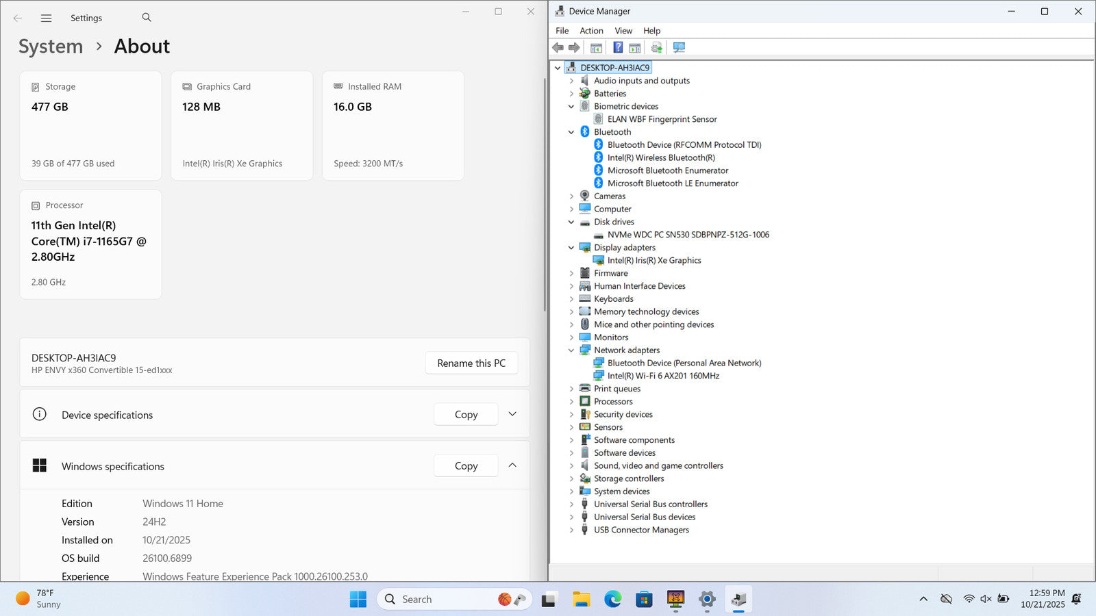 HP ENVY x360 15-ed1071cl 2-in-1 15" FHD Touch I7-1165G7 512GB 16GB W11 Backlit