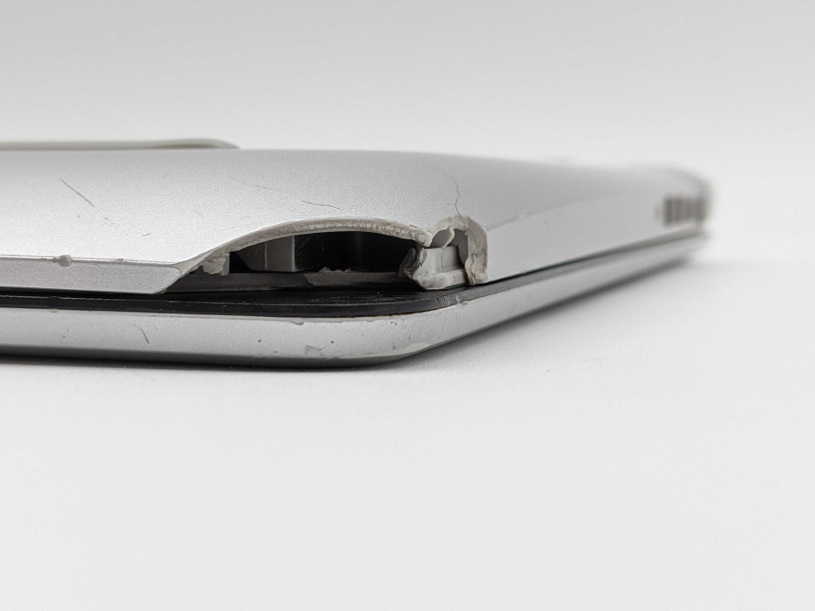 Cosmetic Defects: Interior: Display & bezel have scratches. Palmrest scratched/missing plastic, L corner. Keyboard heavy wear. Exterior: Top and bottom covers have heavy wear/scratches. Both hinges broken.