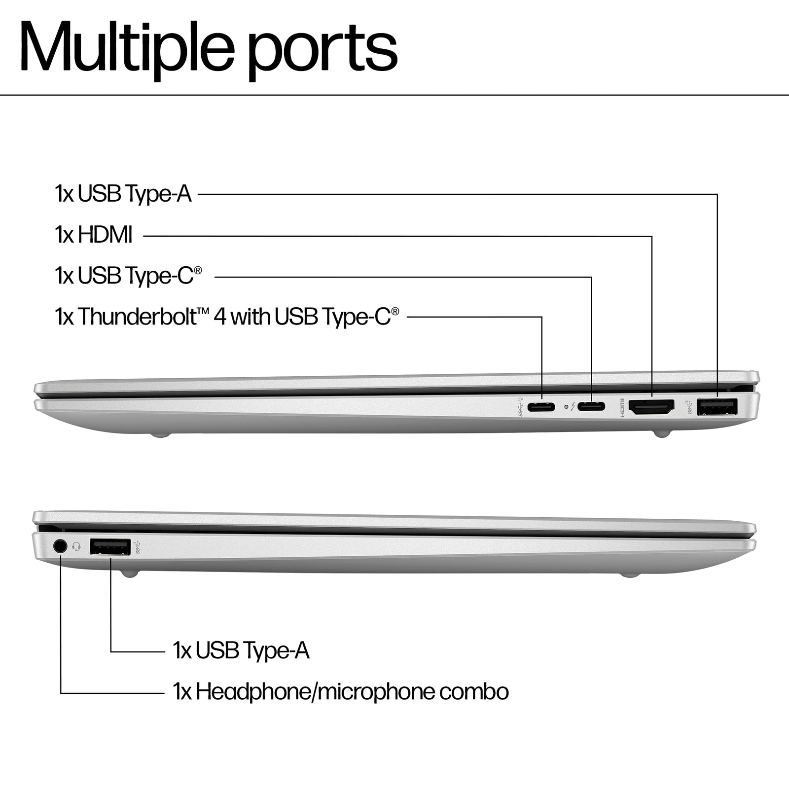 •External I/O Ports: 2 USB Type-C® 10Gbps signaling rate (USB Power Delivery, DisplayPort™ 1.4, HP Sleep and Charge) 1 USB Type-A 10Gbps signaling rate 1 USB Type-A 5Gbps signaling rate 1 HDMI-out 2.1 1 headphone/microphone combo