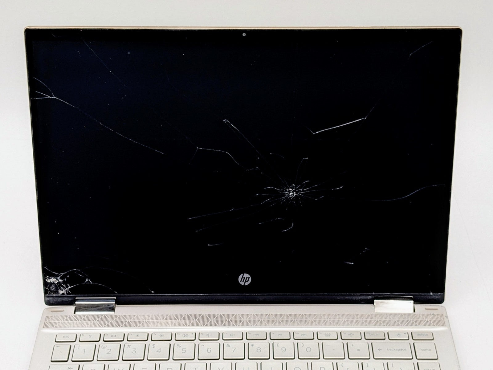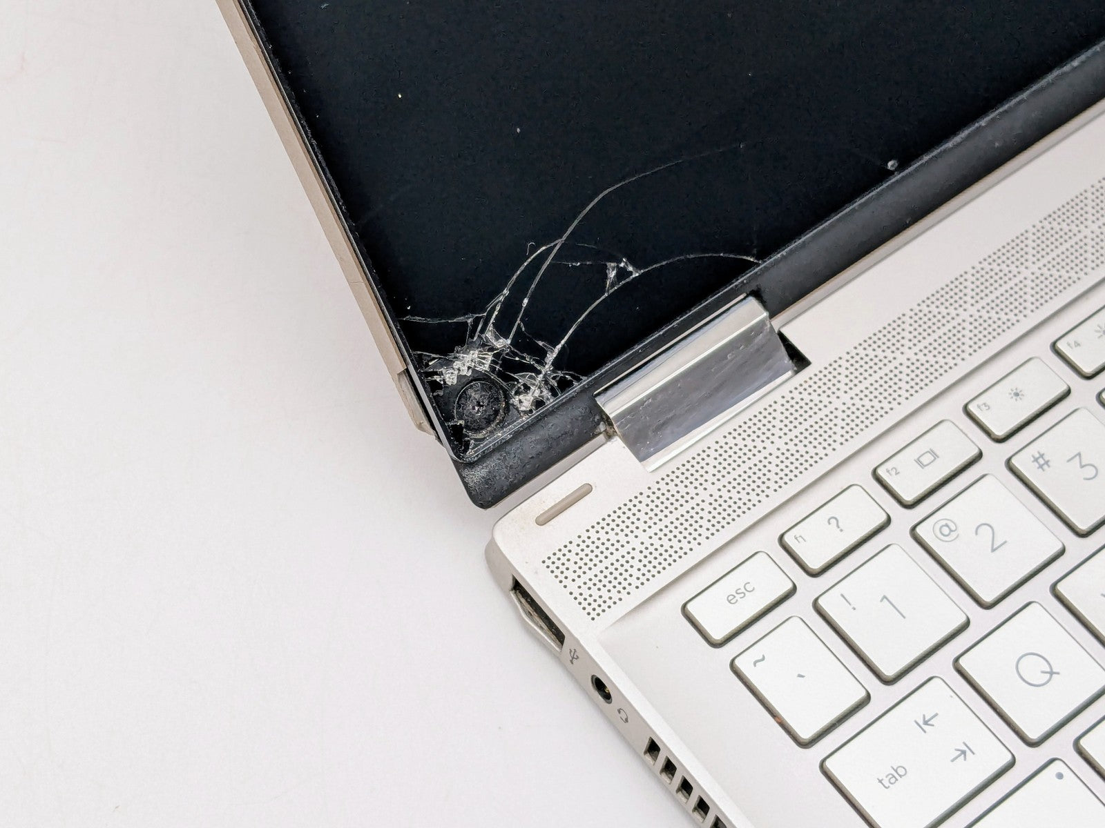 Functional Defects: No RAM/SSD. | Display is cracked/shattered. | Left hinge is a little loose.