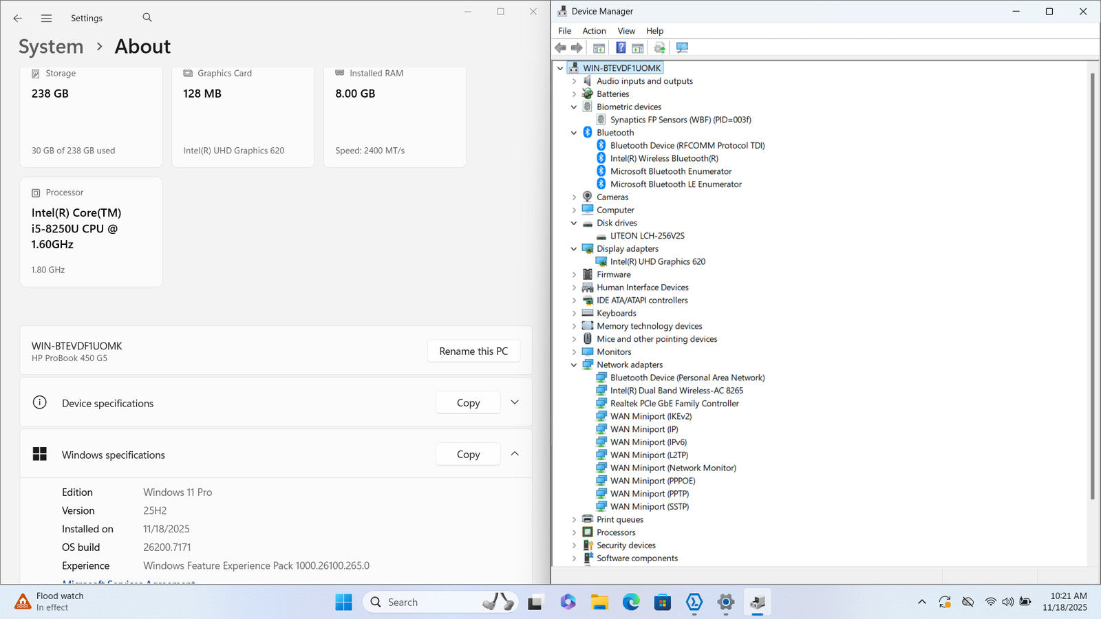 HP ProBook 450 G5 15" FHD I5-8250U 256GB SSD 8GB W11P Webcam Backlit *READ*