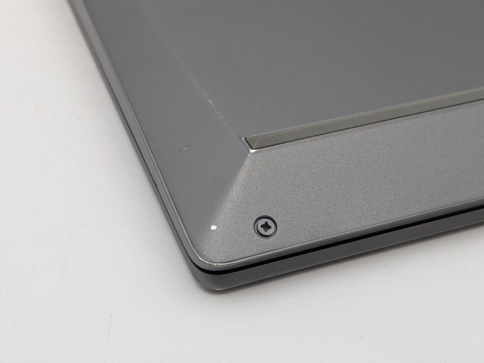 Cosmetic Defects: Interior: Marks on display, semi-visible during normal use. Visible wear on keyboard, small scratches on palm rest and around keyboard. Exterior: Light wear and visible scratches on lid and bottom cover, scuffed along edges of device, dented on bottom corner.