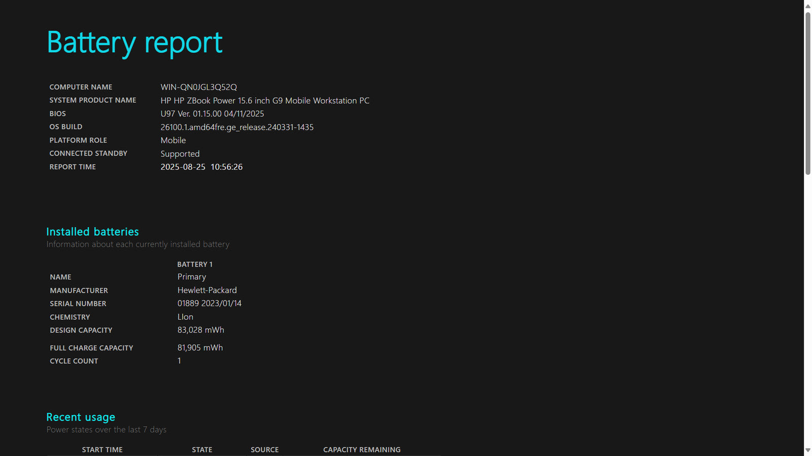 Battery Condition: 81,002/83,028 mWh 97.56%