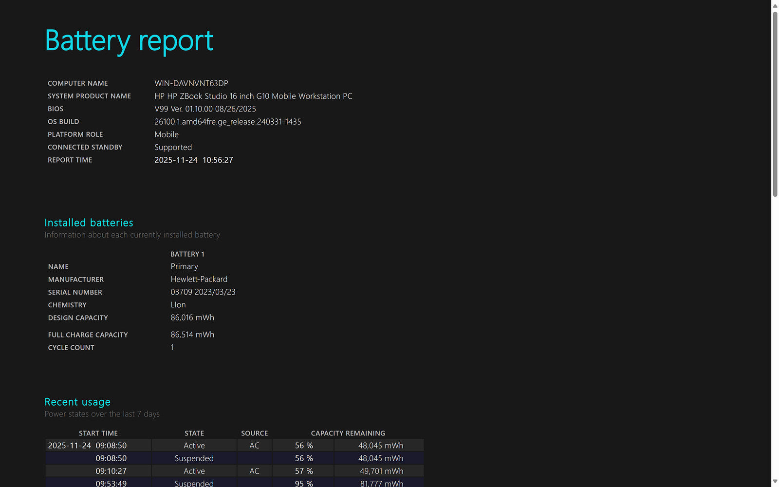 Battery Condition: 86,016/86,548 mWh 99.39%