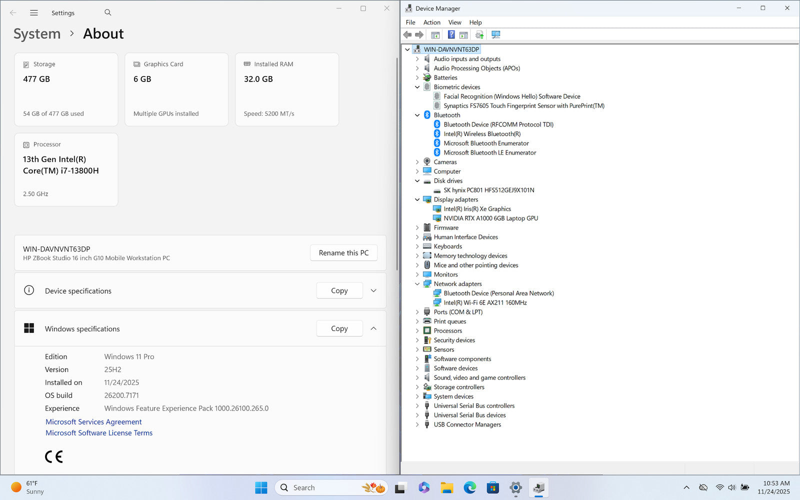 HP ZBook Studio G10 16" UHD+ 4K+ I7-13800H 512GB 32GB W11P RTX A1000 6GB 120Hz