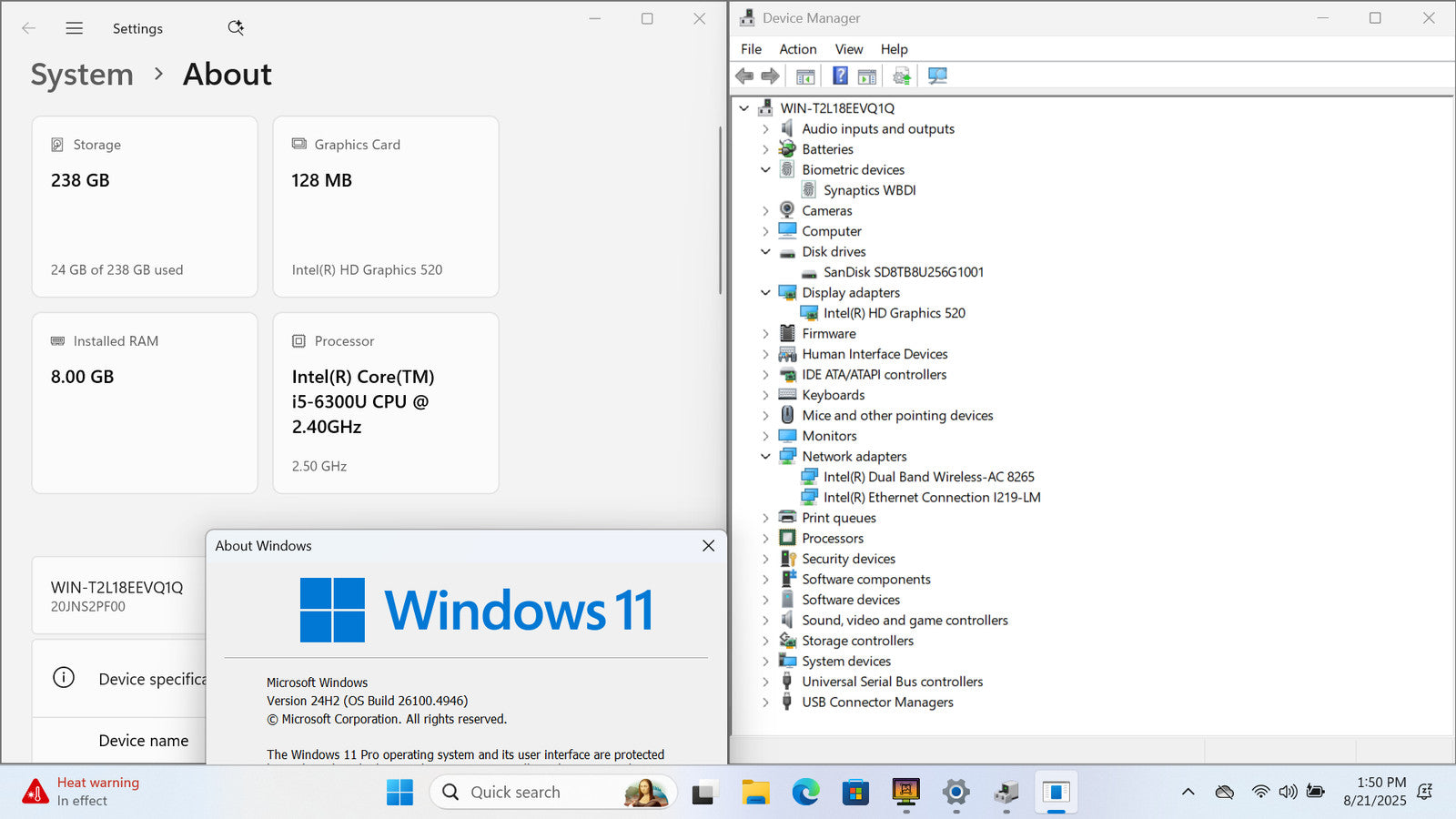 LENOVO 20JNS2PF00 ThinkPad T470 14" FHD I5-6300U 256GB SSD 8GB W11P *READ*
