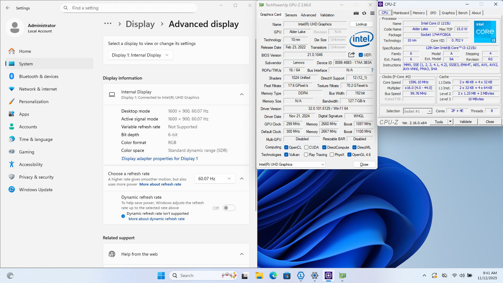 Lenovo IdeaPad 3 17IAU7 17" HD+ I3-1215U 256GB SSD 8GB W11 Webcam FP Reader