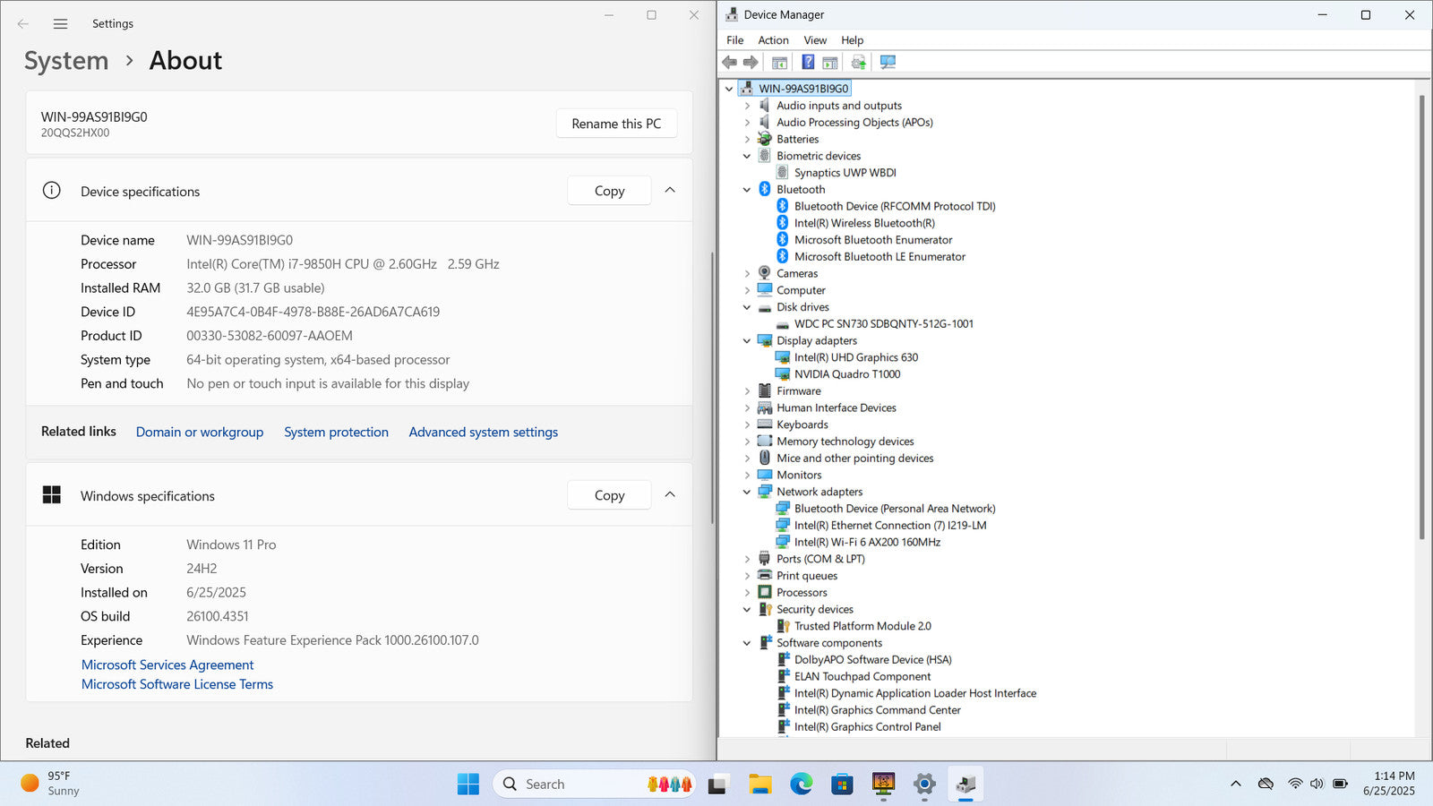 Lenovo P53 15.6 FHD I7-9850H 512GB SSD 32GB W11P Quadro T1000 Webcam FP Reader