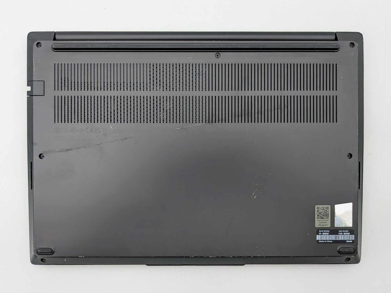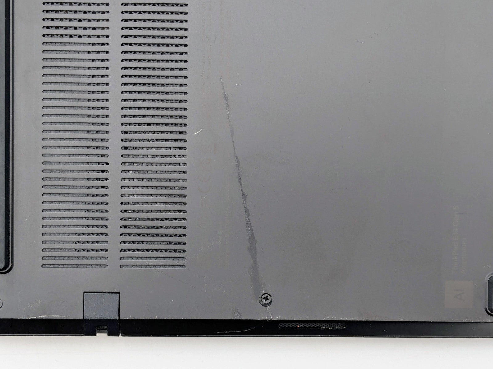 Cosmetic Defects: Interior: Marks on bezel. Display has visible scratches and keyboard imprinting. Scratches and chips on and around keyboard. Crack in upper bezel - missing plastic. Exterior: Scratches, paint chipping, and dents on bottom and top of unit. Dent on corner.