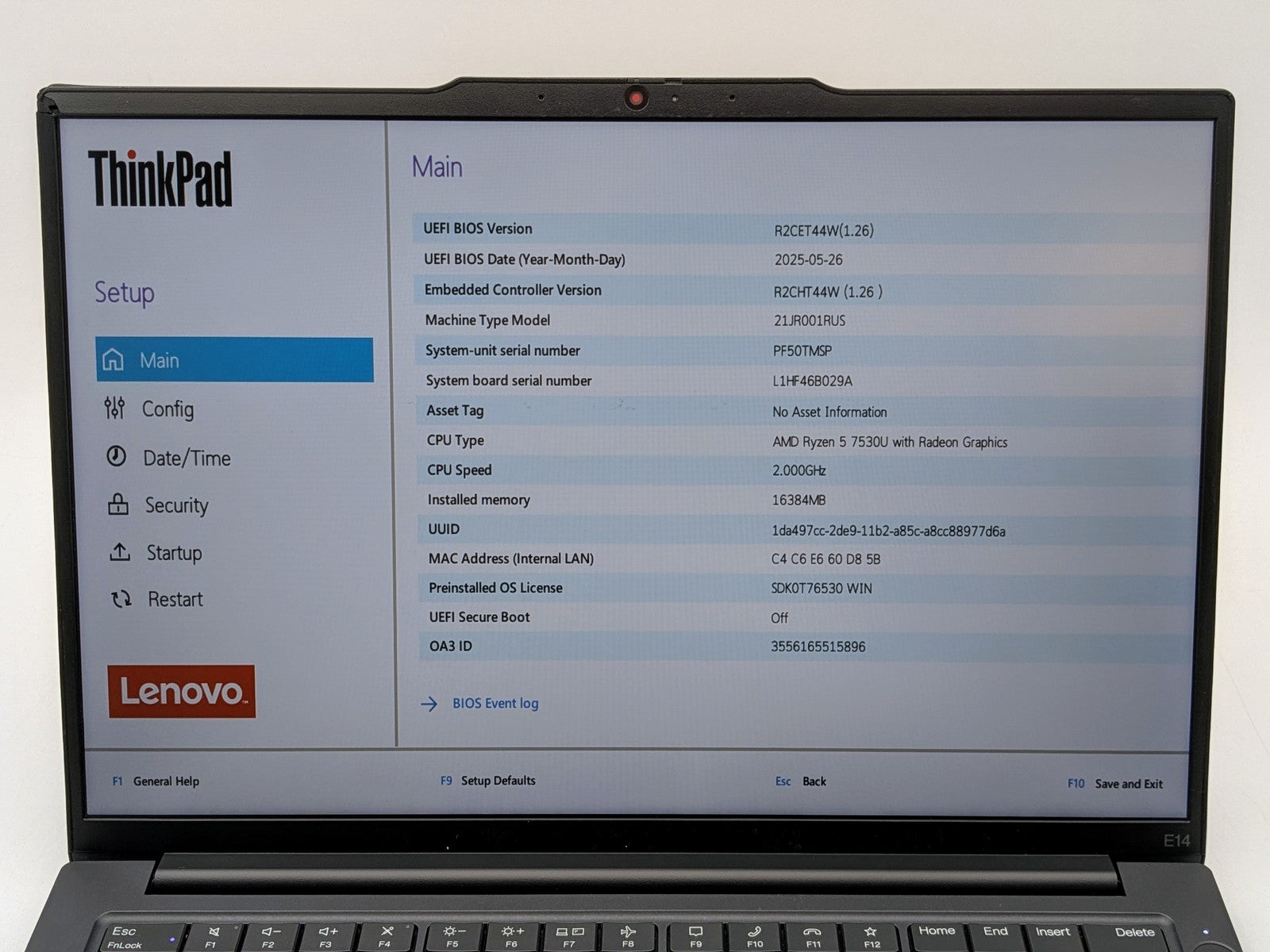 LENOVO THINKPAD E14 GEN 5 14" FHD+ RYZEN 5 7530U 256GB SSD 16GB W11P *READ*