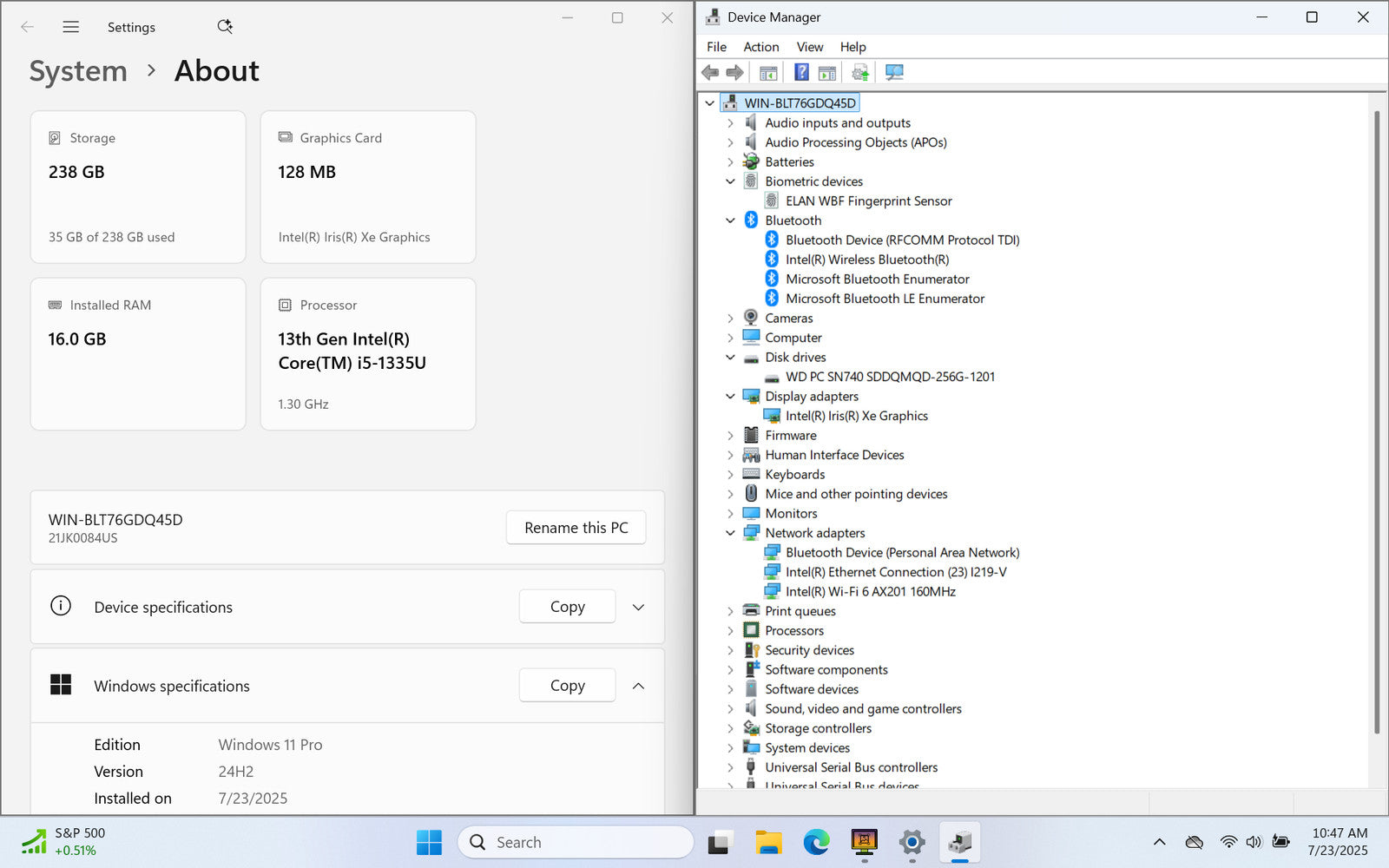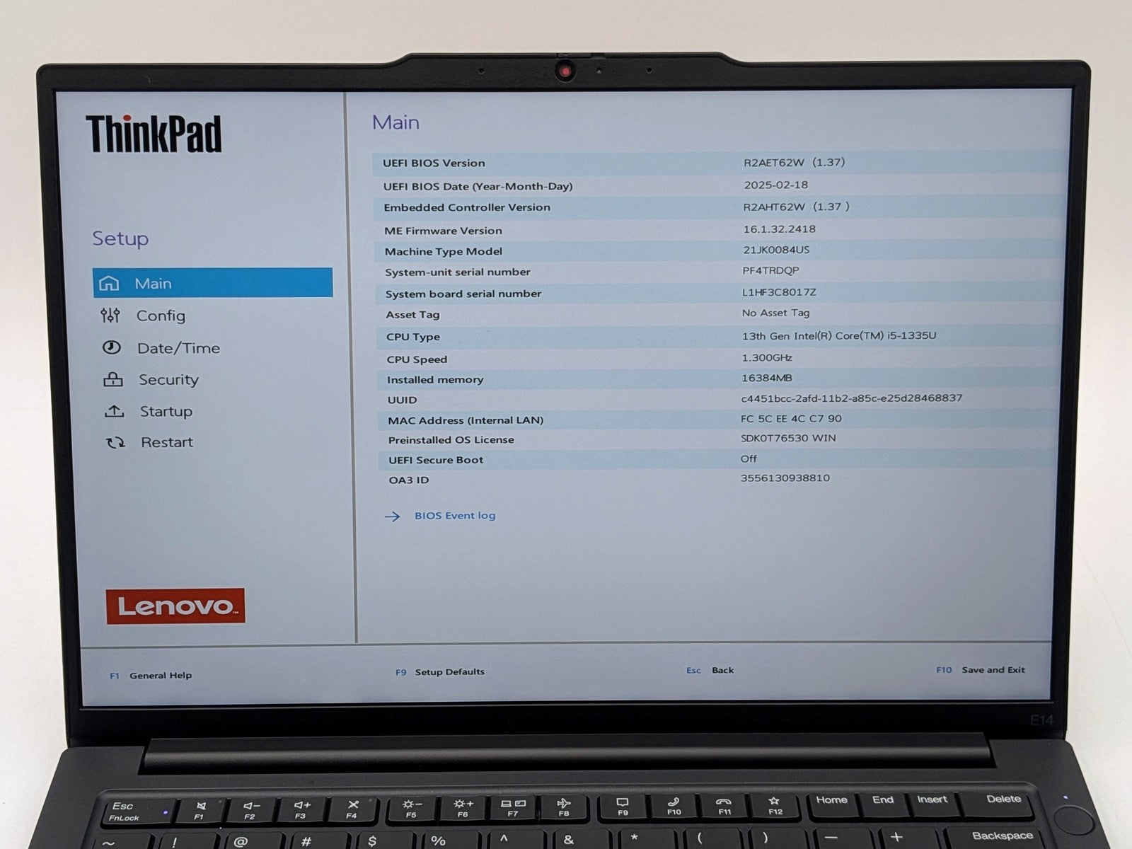 Lenovo ThinkPad E14 Gen 5 (21JK) 14" FHD+ 13TH I5-1335U 256GB SSD 16GB W11P