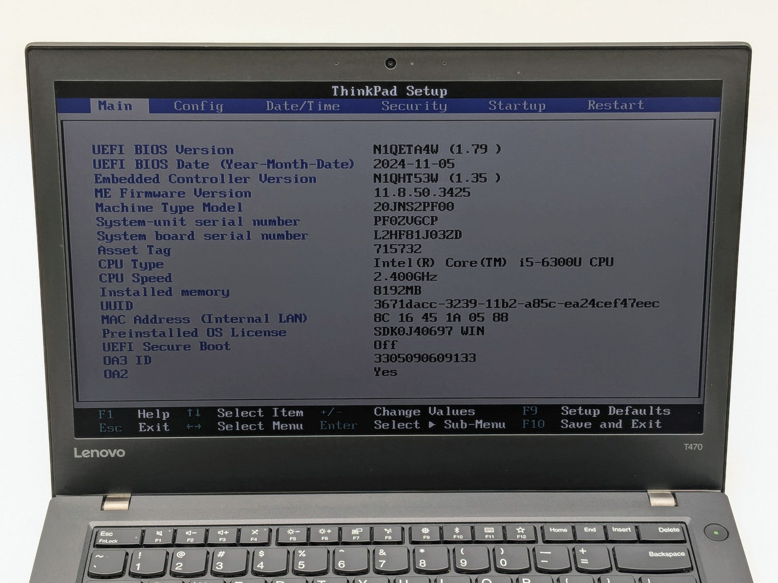 LENOVO ThinkPad T470 14 FHD I5-6300U 256GB SSD 8GB W11P Webcam Backlit FP Reader