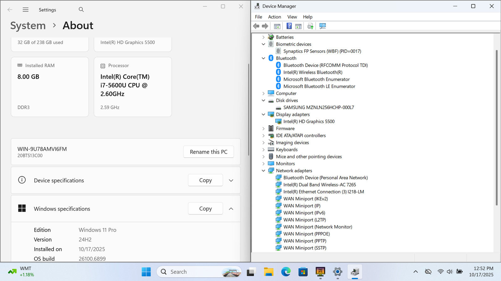 Lenovo ThinkPad X1 Carbon 3rd Gen 14" FHD I7-5600U 256GB SSD 8GB W11P Webcam