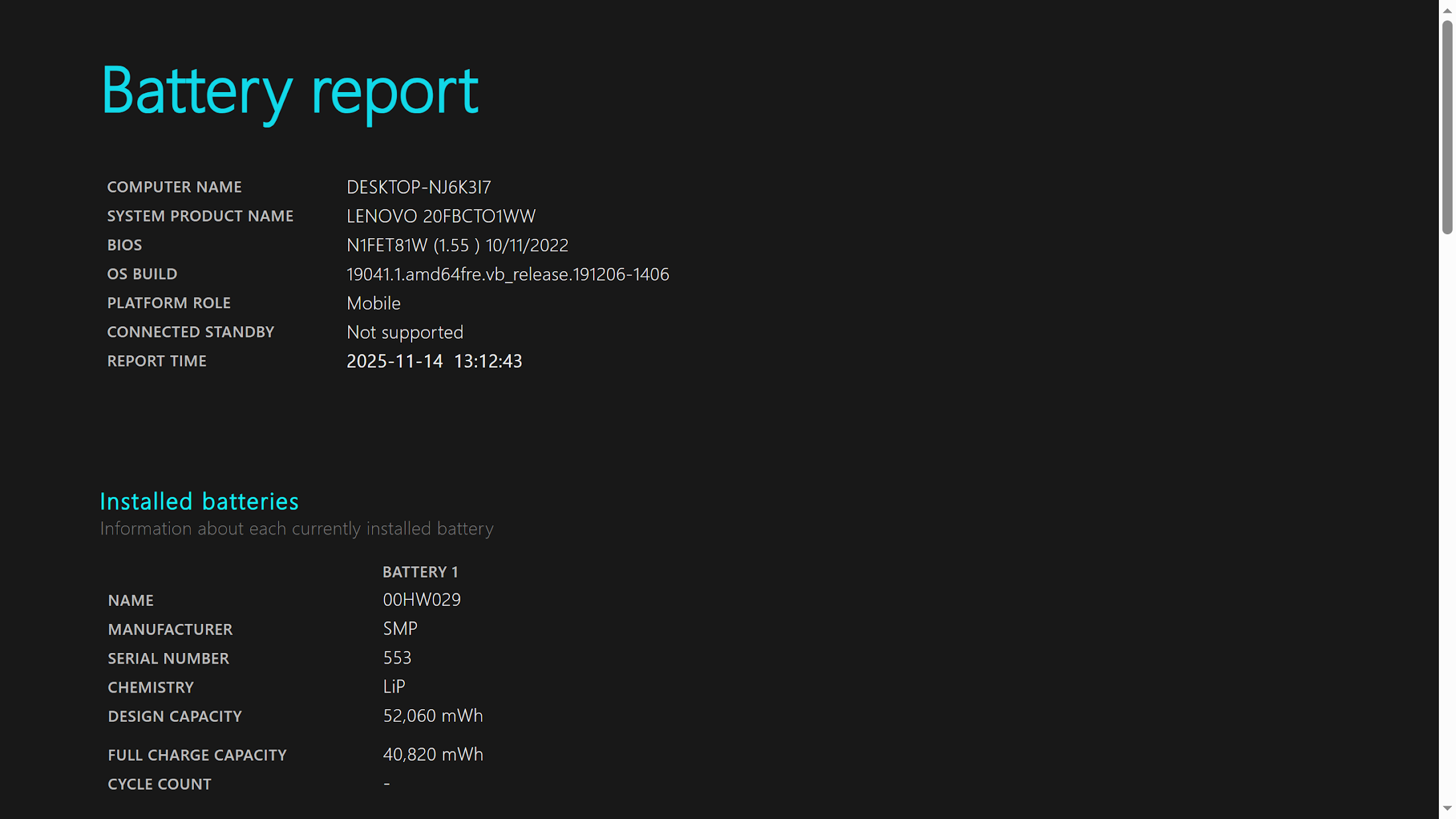 Battery Condition: 40,820/52,060 mWh 78.41%