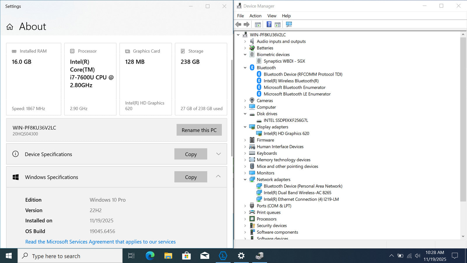 Cosmetic Defects: Interior: Display has visible scratches and keyboard imprinting. Moderate wear and discoloration on keyboard, touchpad, palm rest, fingerprint reader, bezel, and around keyboard. Exterior: Light to moderate wear on lid and bottom cover, scuffs and patches of chipped paint along edges of device. Missing one bottom rubber foot, speaker grille damaged.