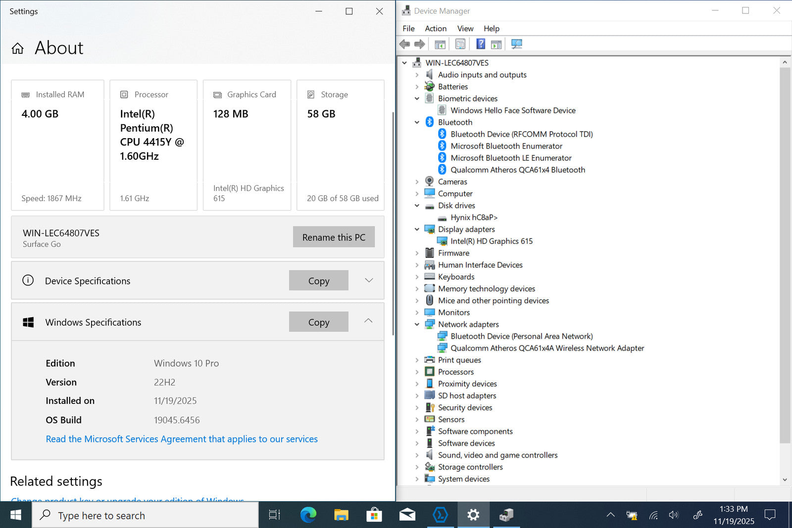 Microsoft Surface Go 2-in-1 10" 1800 x 1200 Touch PENTIUM 4415Y 4GB W10P *READ*