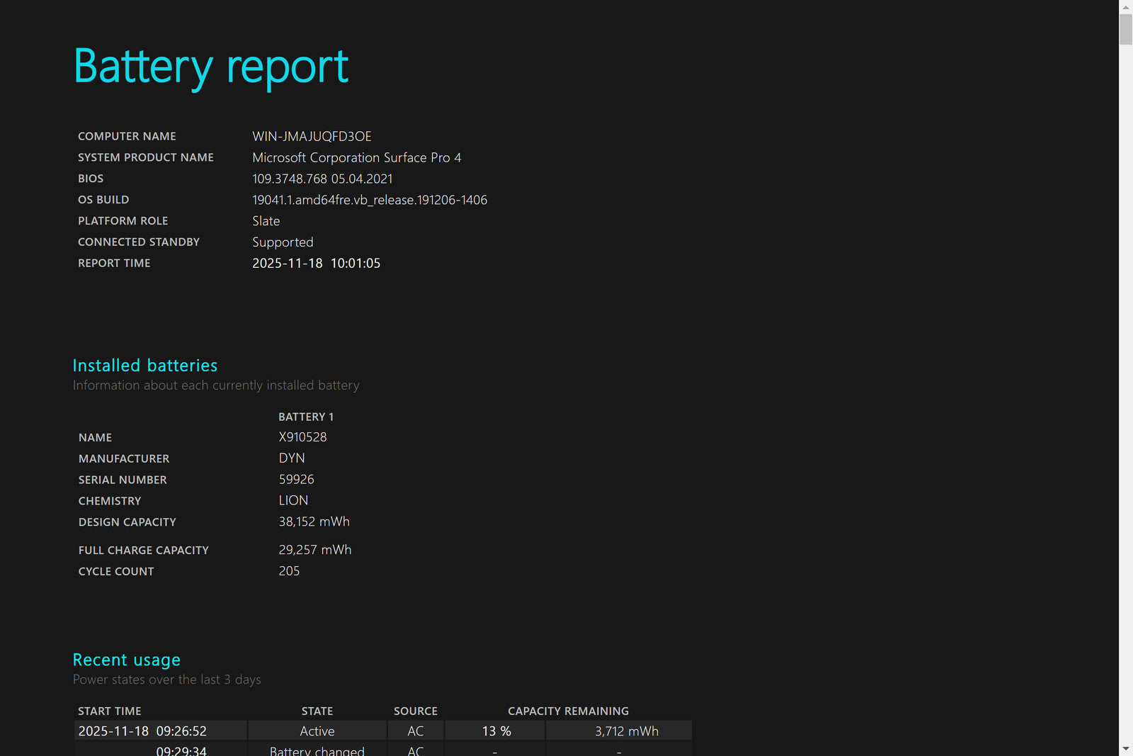 Battery Condition: 29,257/38,152 mWh 76.69%