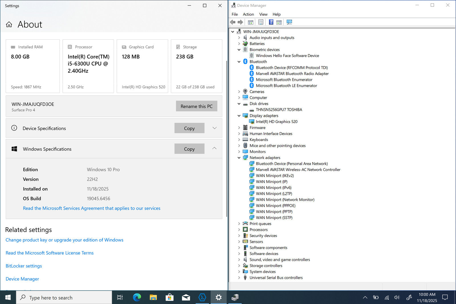 Microsoft Surface Pro 4 2-in-1 12" Touch I5-6300U 256GB SSD 8GB W10P Webcam