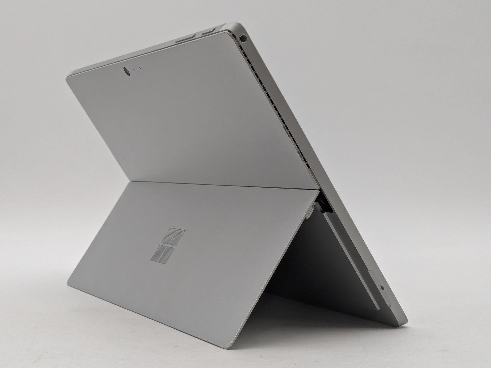 Cosmetic Defects: Display has small scratches and bright spot near bottom-right. Sides have chipped paint and wear. Back cover and kickstand have visibel scratches, chips in paint, and scuffs. Keyboard port has chipped paint.\