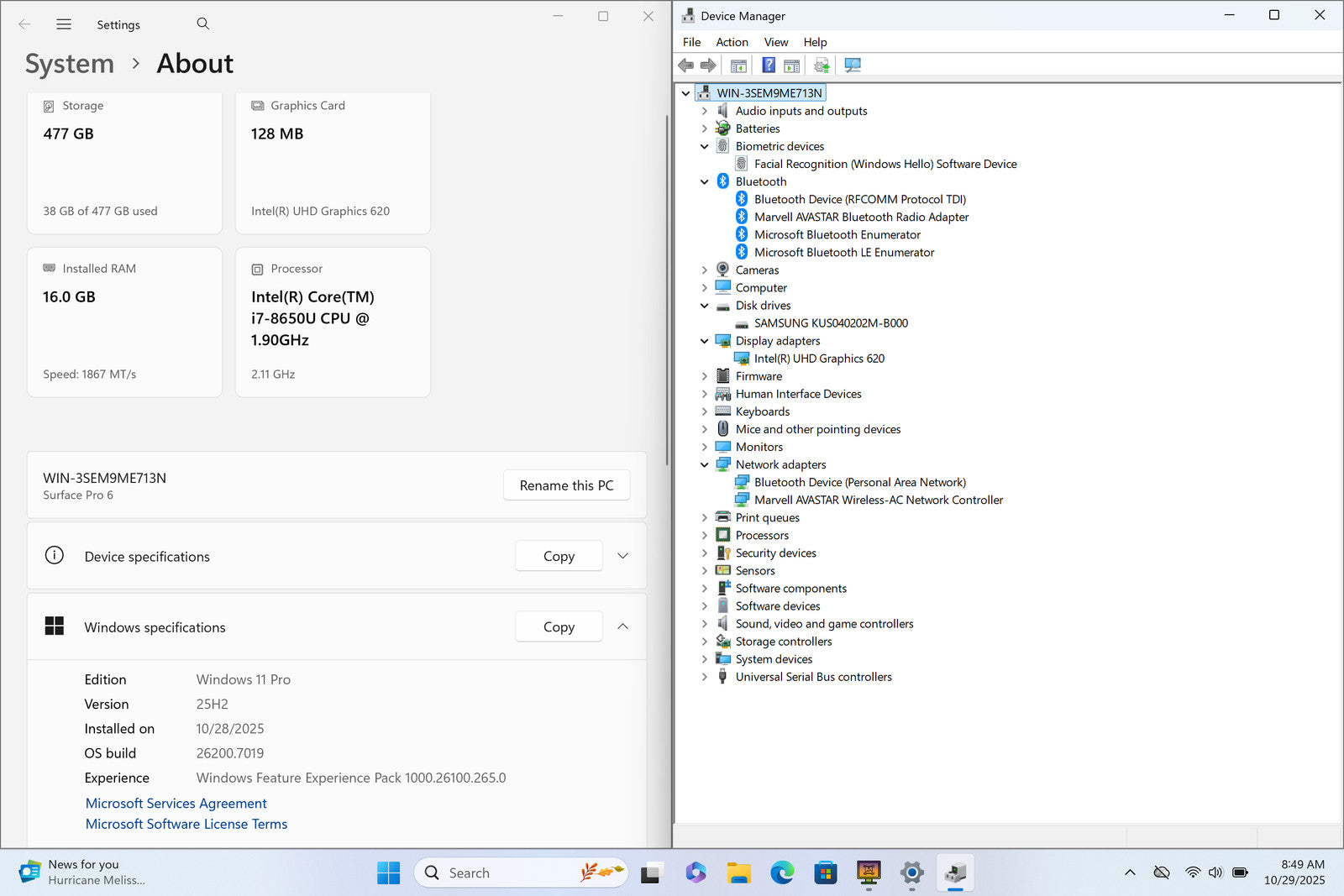 Microsoft Surface Pro 6 2-in-1 12 2736 x 1824 Touch I7-8650U 512GB SSD 16GB W11P