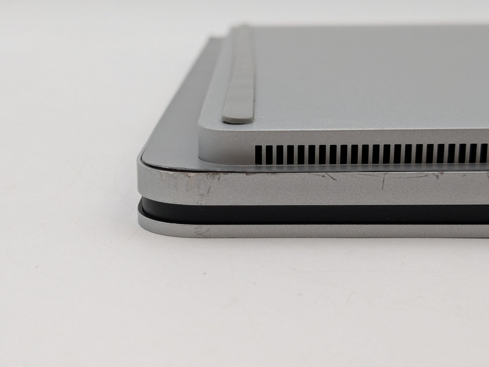 Cosmetic Defects: Interior: Scratches above keyboard. Marks on display, invisible during normal use. Exterior: Scratches and smears on bottom of unit. Cover has been removed so second paper cover has crinkles. Chips and wear on bottom sides. Scratches on logo and top cover.