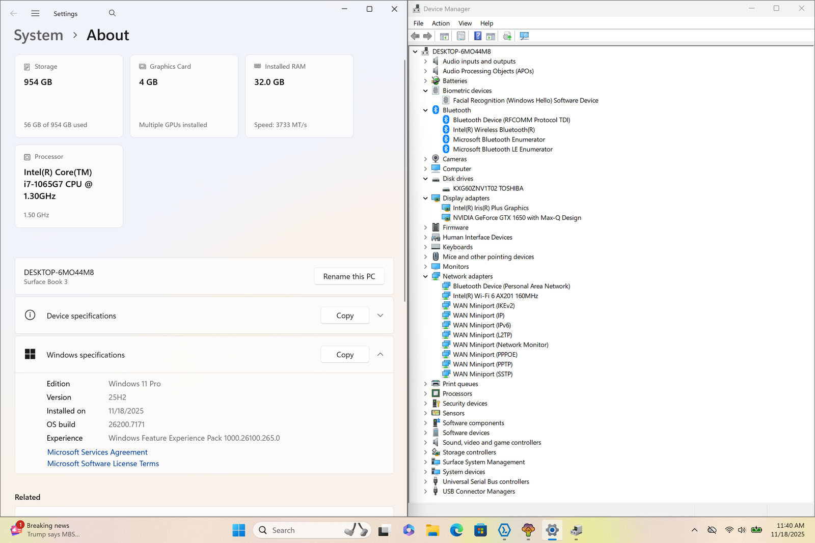 Surface Book 3 2-in-1 13" Touch I7-1065G7 1TB 32GB W11P GeForce GTX 1650 Max-Q