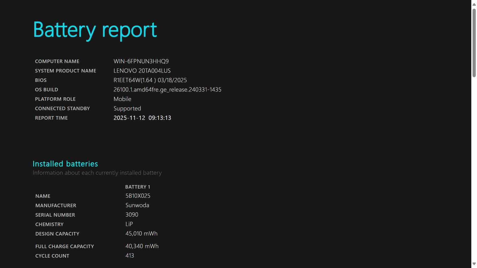Battery Condition: 40,250/45,010 mWh 89.42%