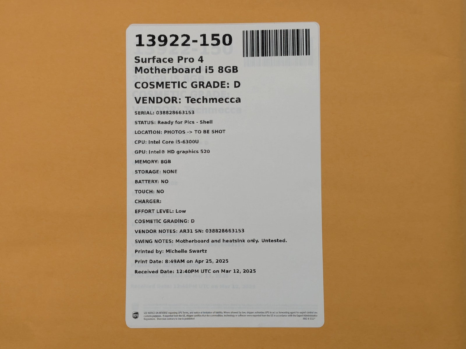 MICROSOFT Surface Pro 4 Motherboard i5 8GB I5-6300U 8GB Motherboard