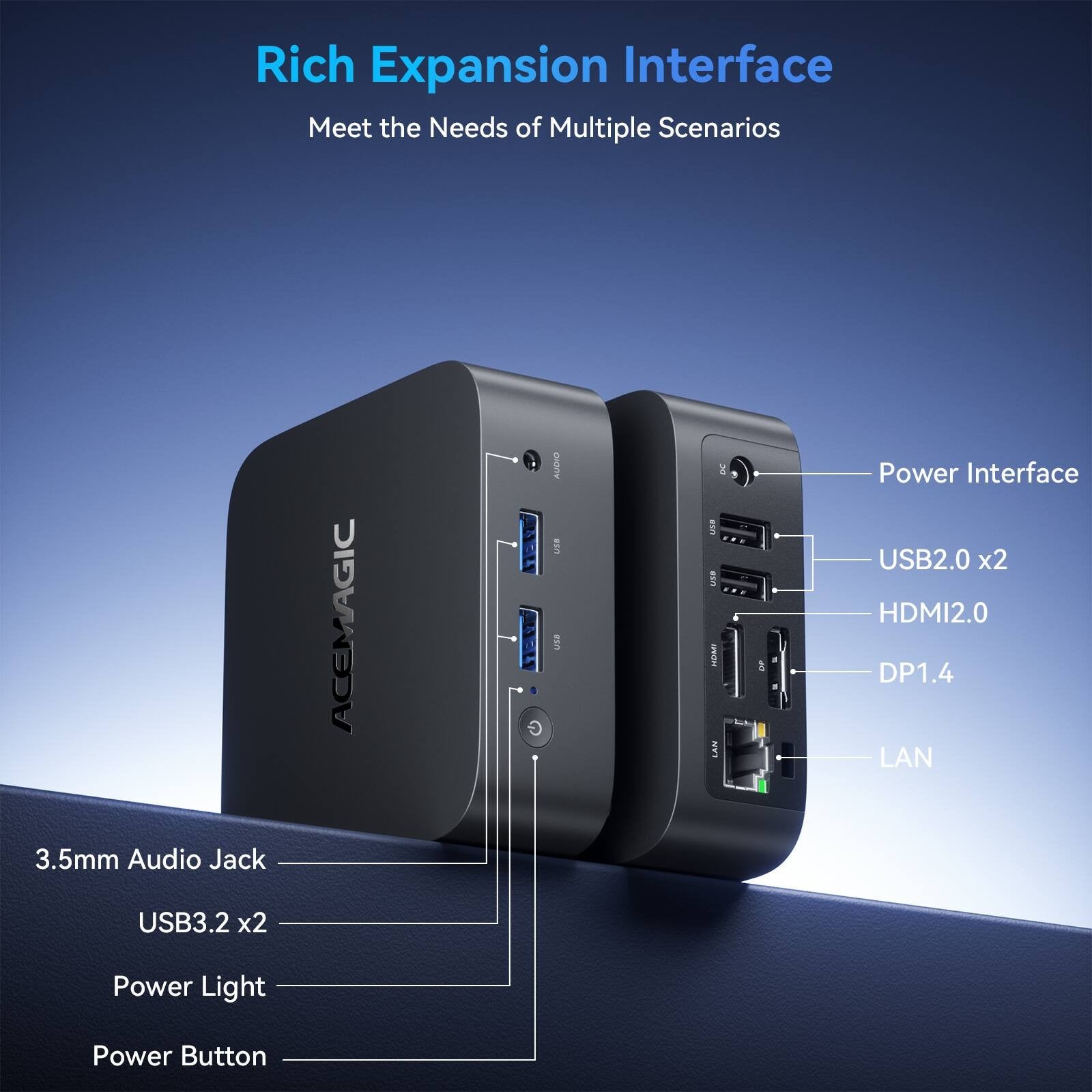 ACEMAGIC V2 Mini PC Intel 12th Gen N97 3.6GHz 16GB 512GB M.2 SSD Support 4K Disp