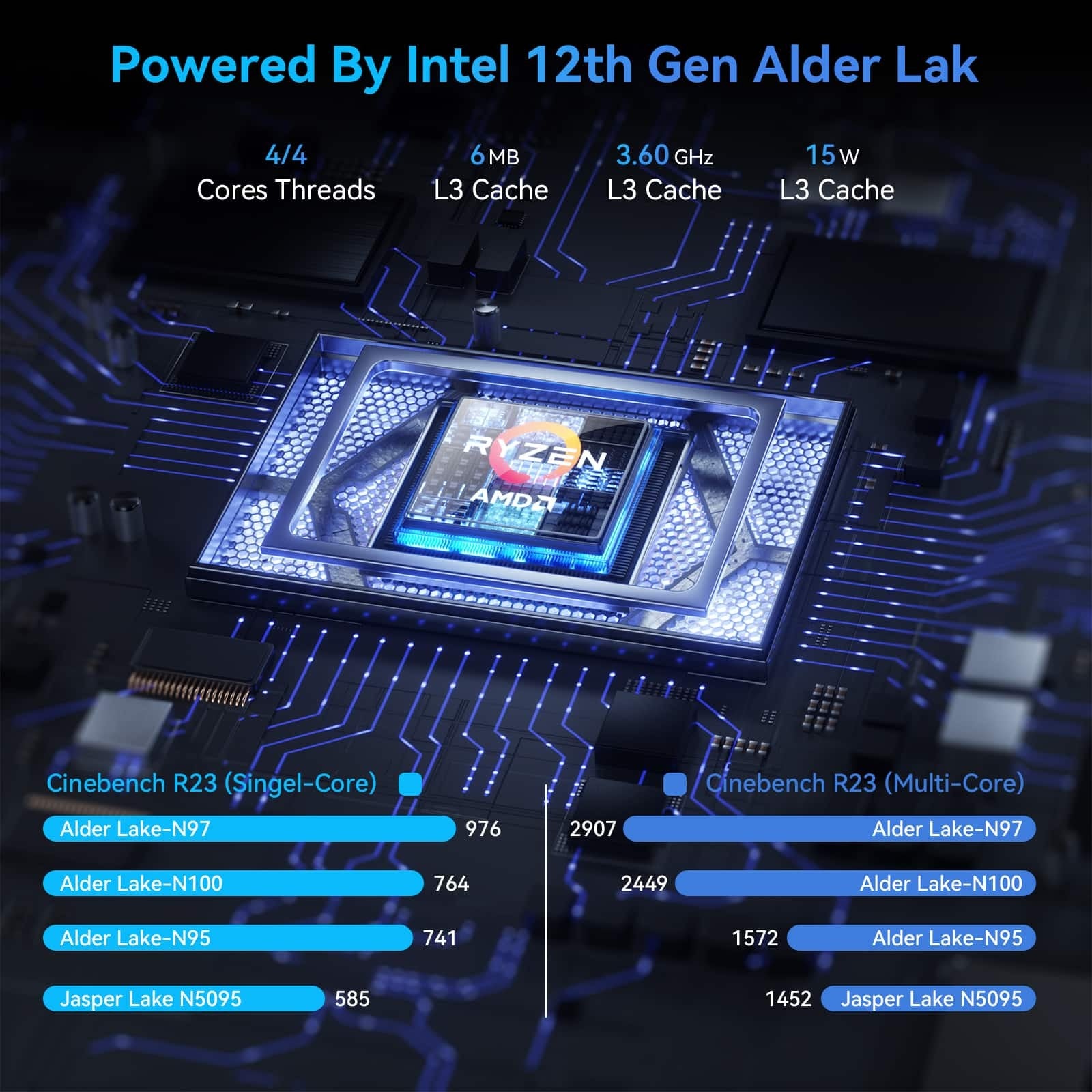 •Model: V2 Mini PC - Intel 12th Gen N97 (up to 3.6GHz) - 16GB Memory - 512GB M.2 SSD - Support 4K Display/USB3.2/WiFi/BT