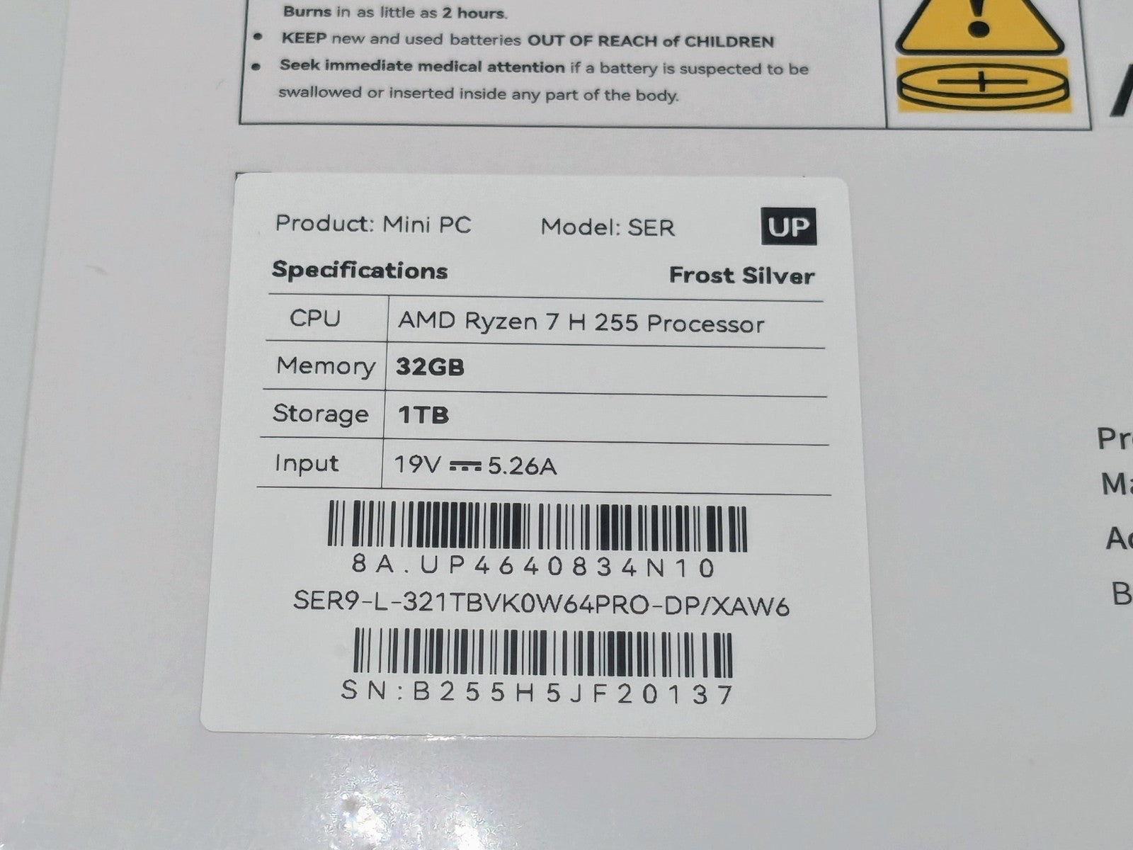Beelink Mini Desktop SER7 AMD Ryzen 7 H 255 32Gb 1TB - Frost Silver