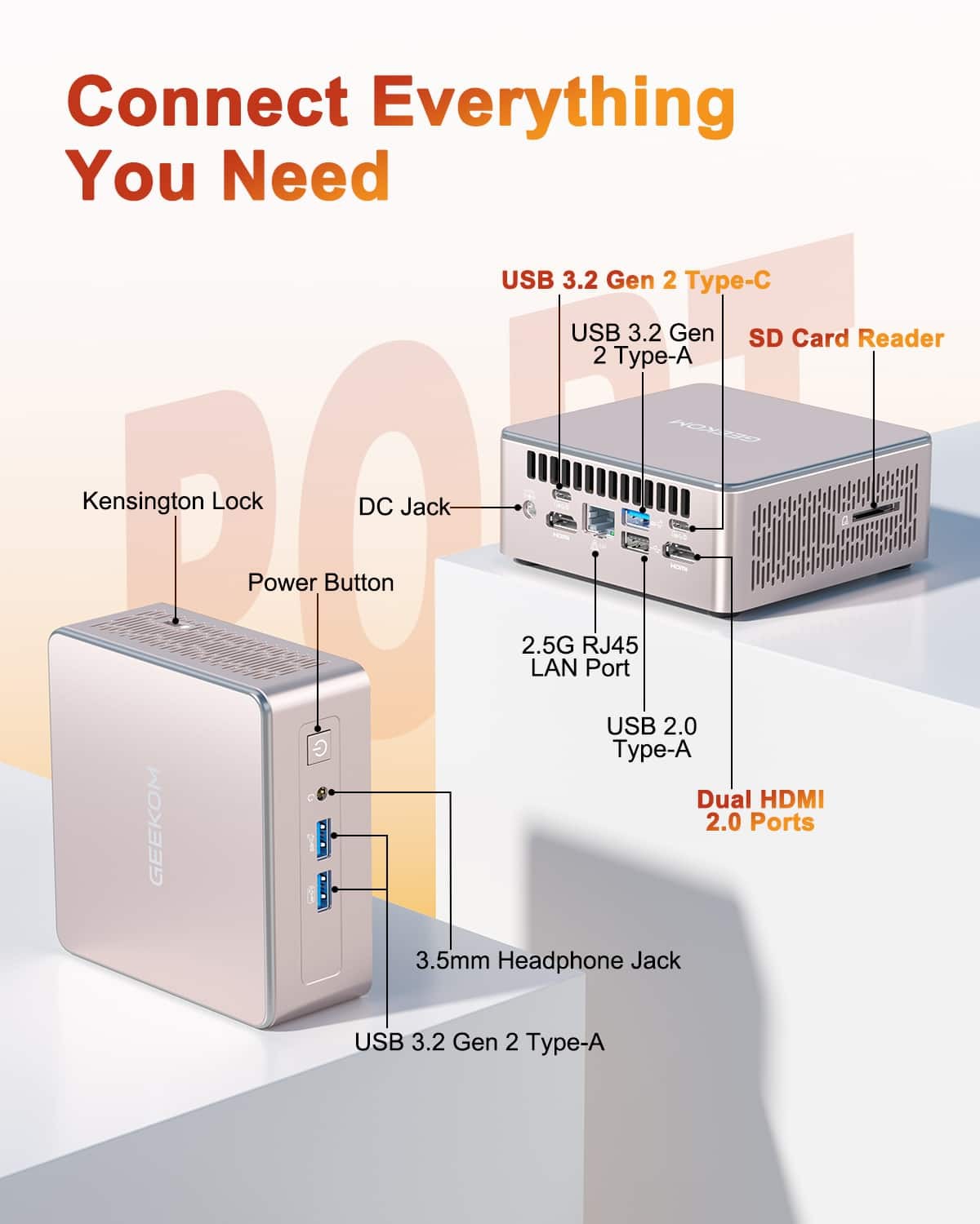 Geekom A5 2025 Edition Mini PC, AMD Ryzen 5 7430U, 16GB DDR4 RAMu0026 512GB M.2