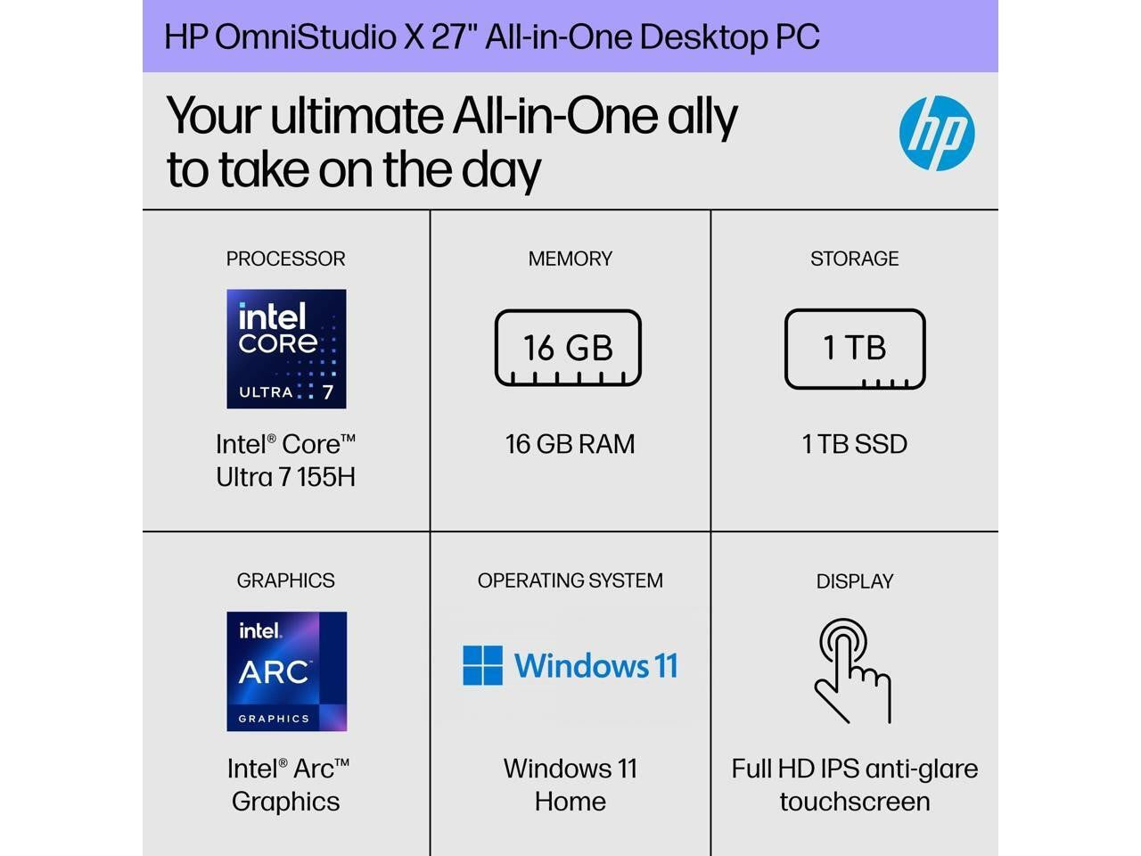 HP OmniStudio X Intel Ultra 7 Series 1 Intel Arc 16GB 1TB SSD 27" 27" Touch BT W