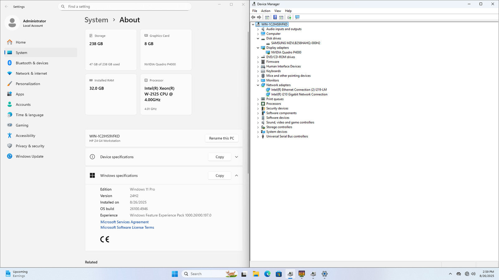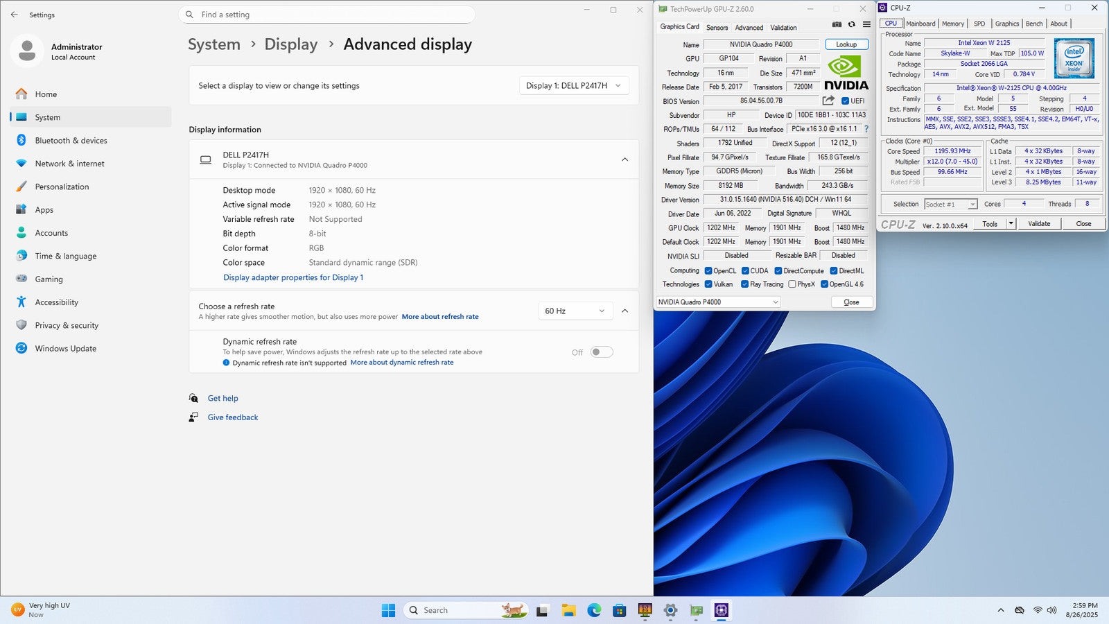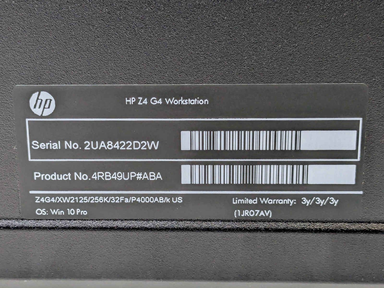 HP Z4 G4 XEON W-2125 256GB SSD 32GB W11P Quadro P4000 DVD